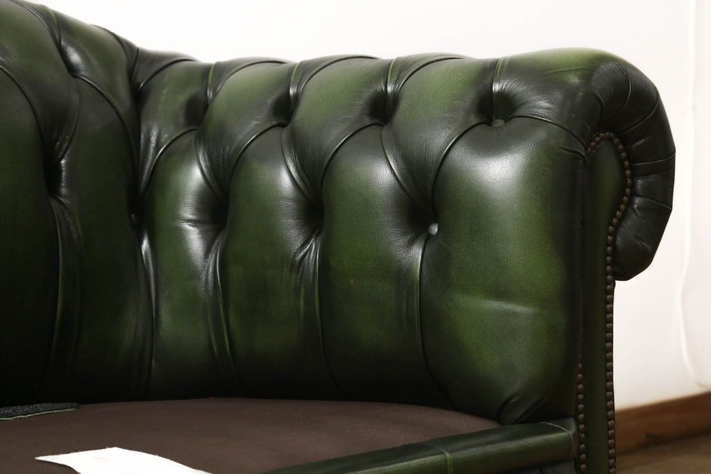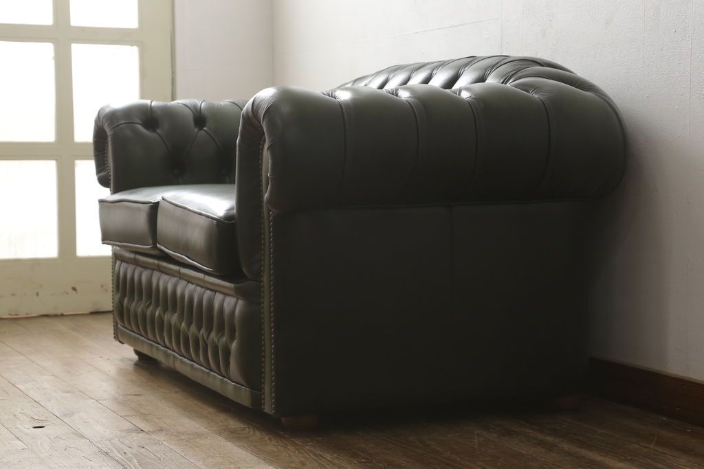 2人掛けソファをリペア&カスタム!既存のキャスターを取り外し、希望の長さにカットした脚を取り付け。色味はオーク系に着色。(二人掛け、ラブソファ)