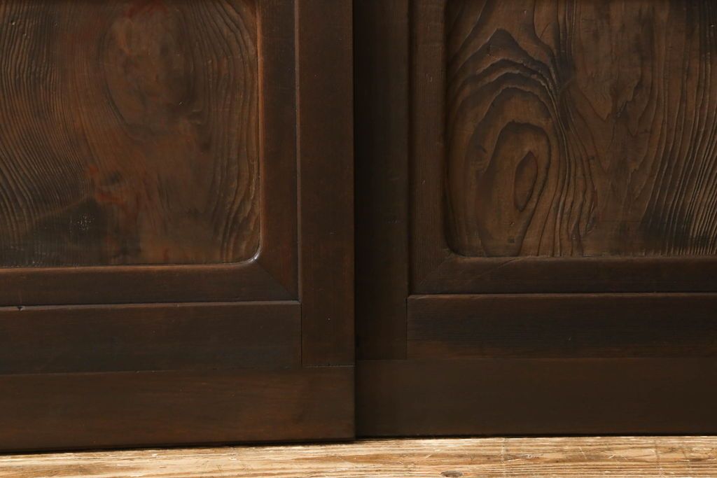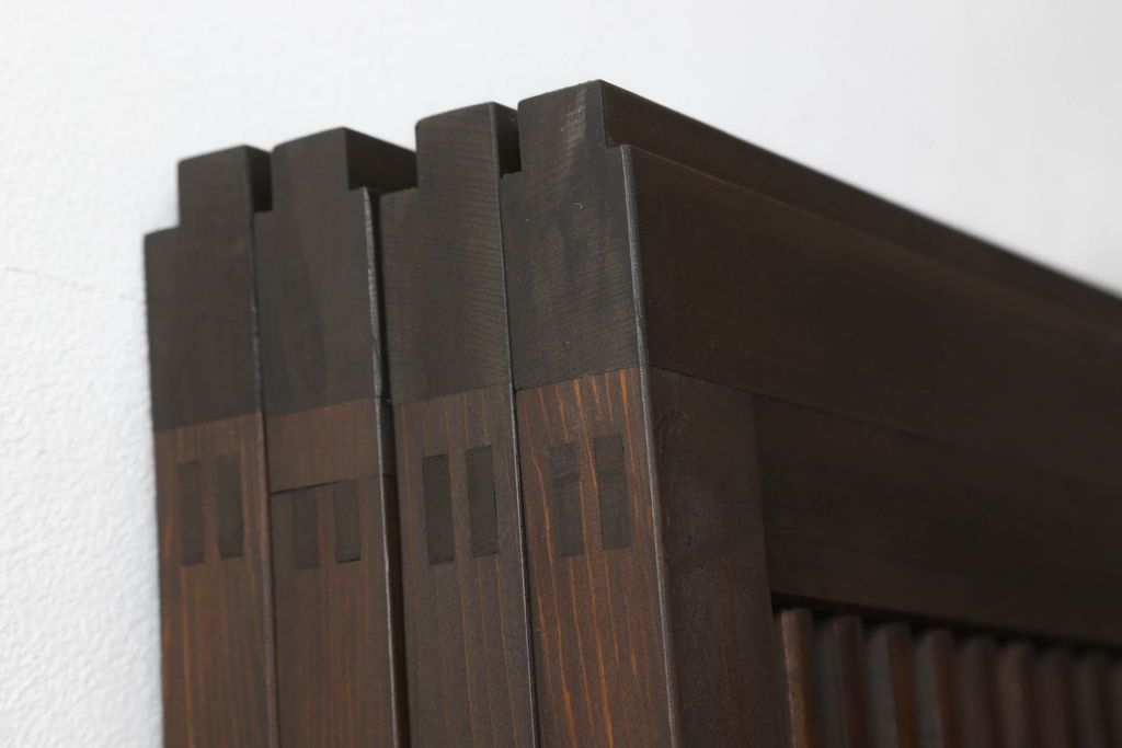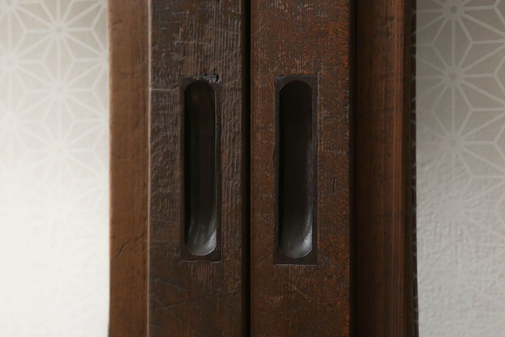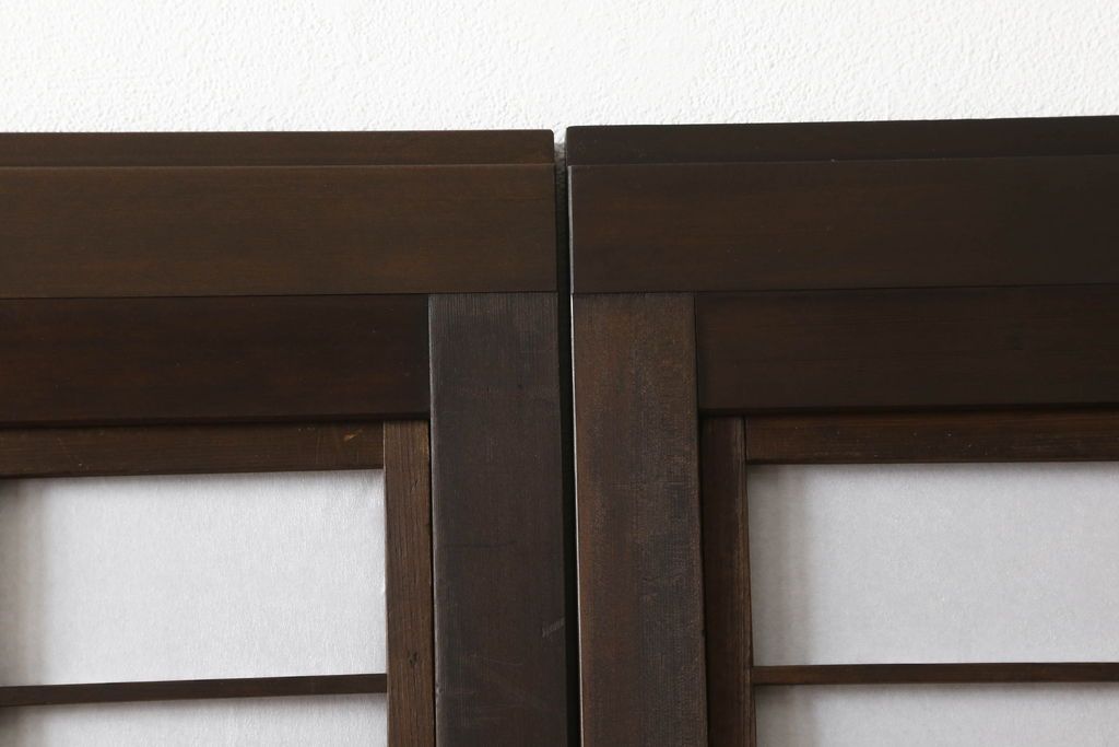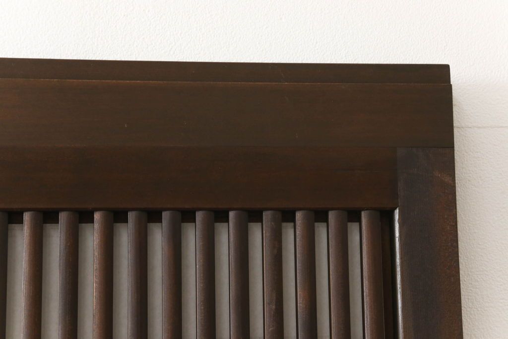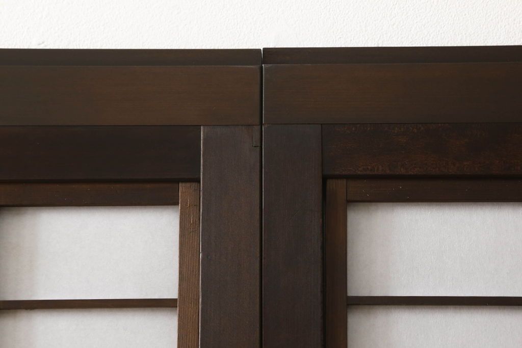 セミオーダー家具実績 > 裏障子付き格子戸4枚をリペア&カスタム!高さと幅をリサイズし、平戸車を取り付け。裏障子はプラスチック障子を貼り付け、ガラス部分は当店オリジナルの麻の葉紋様ガラスに交換。色味は当店商品を参考に着色。(引き戸、ガラス帯戸)