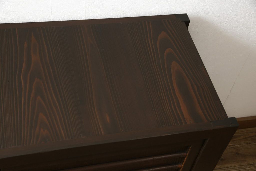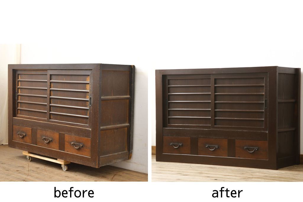 四尺水屋箪笥サイドボードをリペア&カスタム!天板部分の塗り直し、現状のお品物に合わせて1トーン程落ち着いた色に着色し、修繕箇所は本体と馴染むように。(食器棚、収納棚、キャビネット)