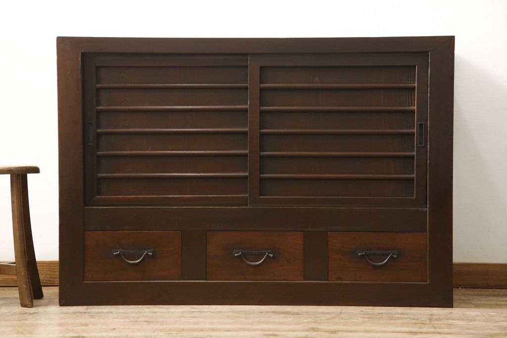 和箪笥 > 四尺水屋箪笥サイドボードをリペア&カスタム!天板部分の塗り直し、現状のお品物に合わせて1トーン程落ち着いた色に着色し、修繕箇所は本体と馴染むように。(食器棚、収納棚、キャビネット)