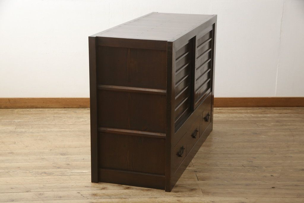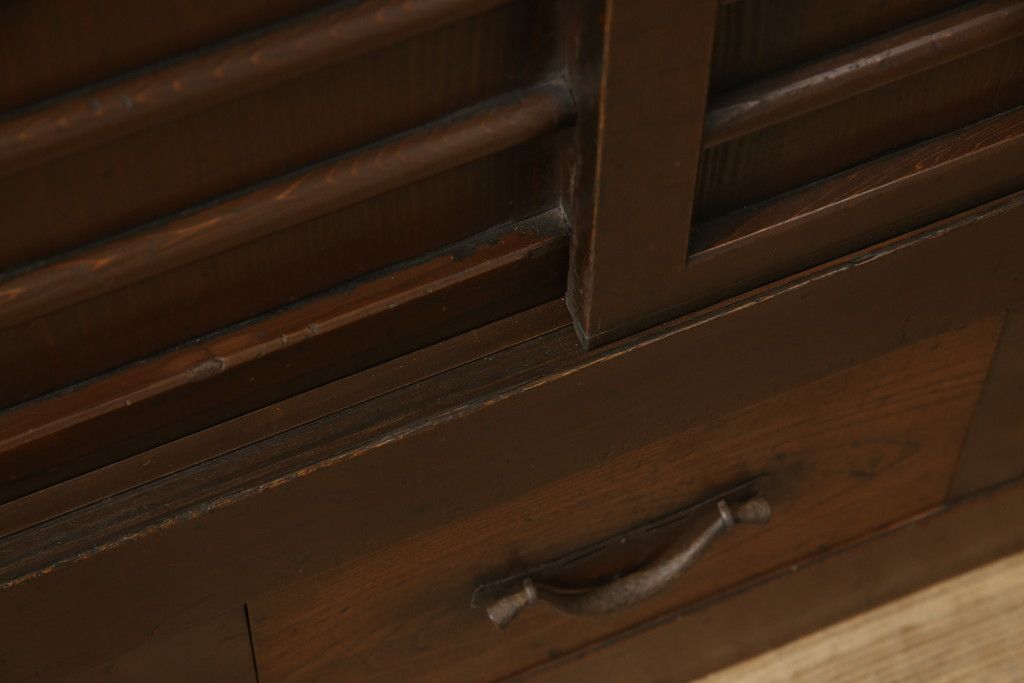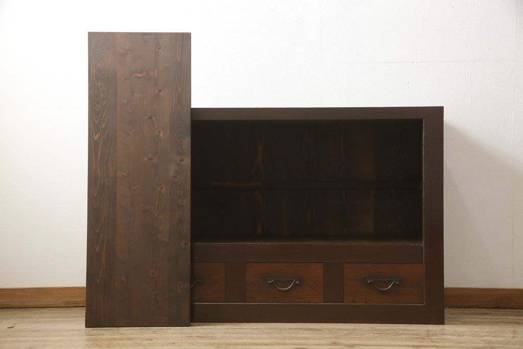 和箪笥> 水屋箪笥 > 四尺水屋箪笥サイドボードをリペア&カスタム!天板部分の塗り直し、現状のお品物に合わせて1トーン程落ち着いた色に着色し、修繕箇所は本体と馴染むように。(食器棚、収納棚、キャビネット)