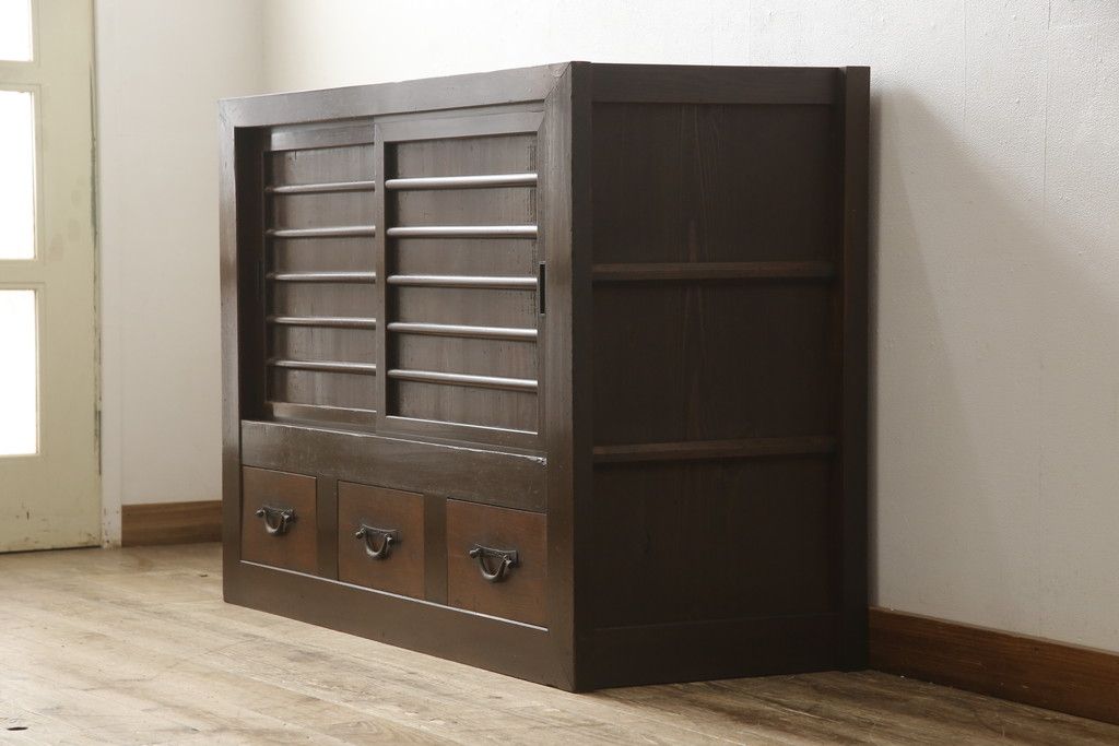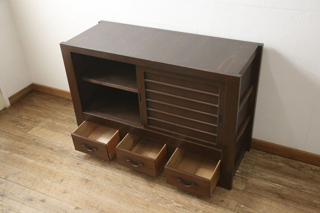 キャビネット・戸棚> サイドキャビネット > 四尺水屋箪笥サイドボードをリペア&カスタム!天板部分の塗り直し、現状のお品物に合わせて1トーン程落ち着いた色に着色し、修繕箇所は本体と馴染むように。(食器棚、収納棚、キャビネット)