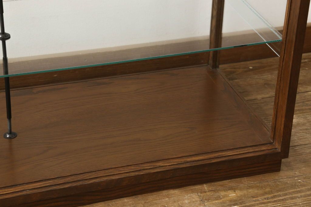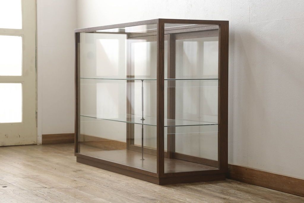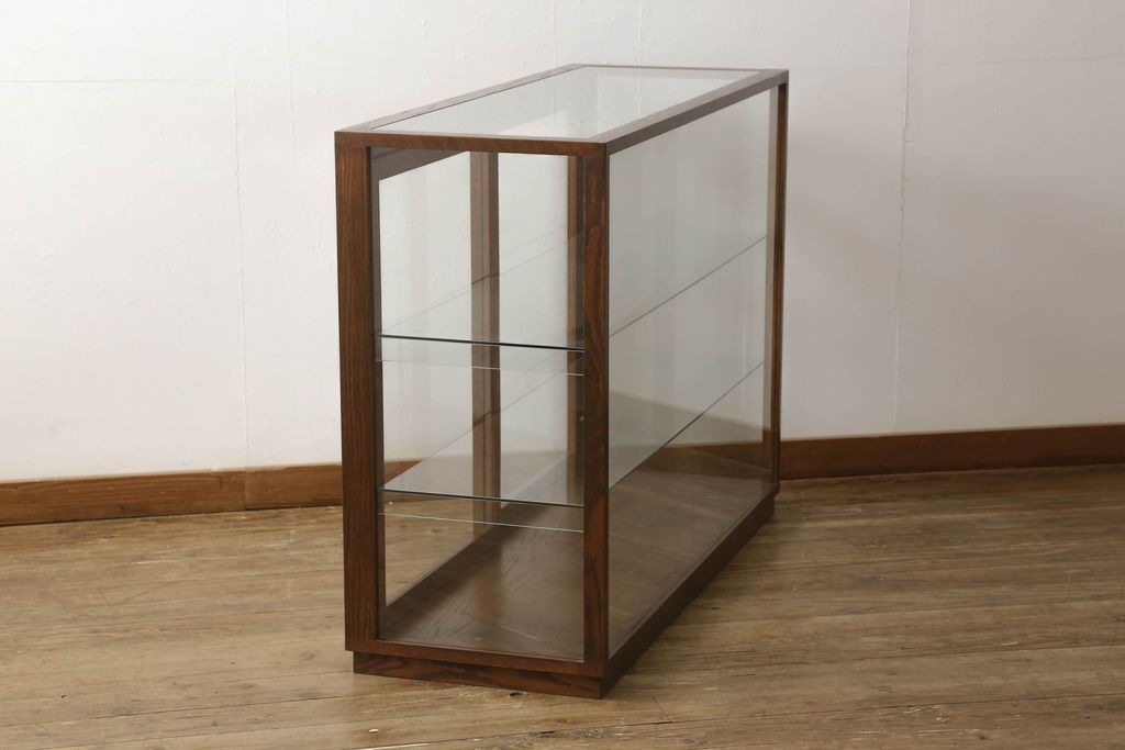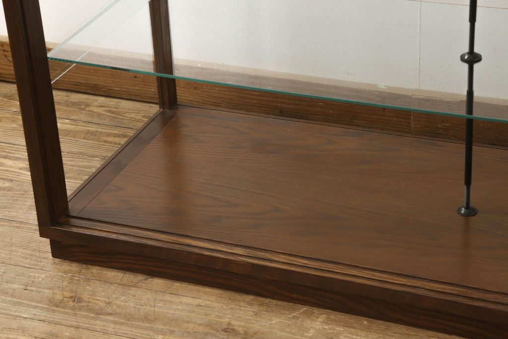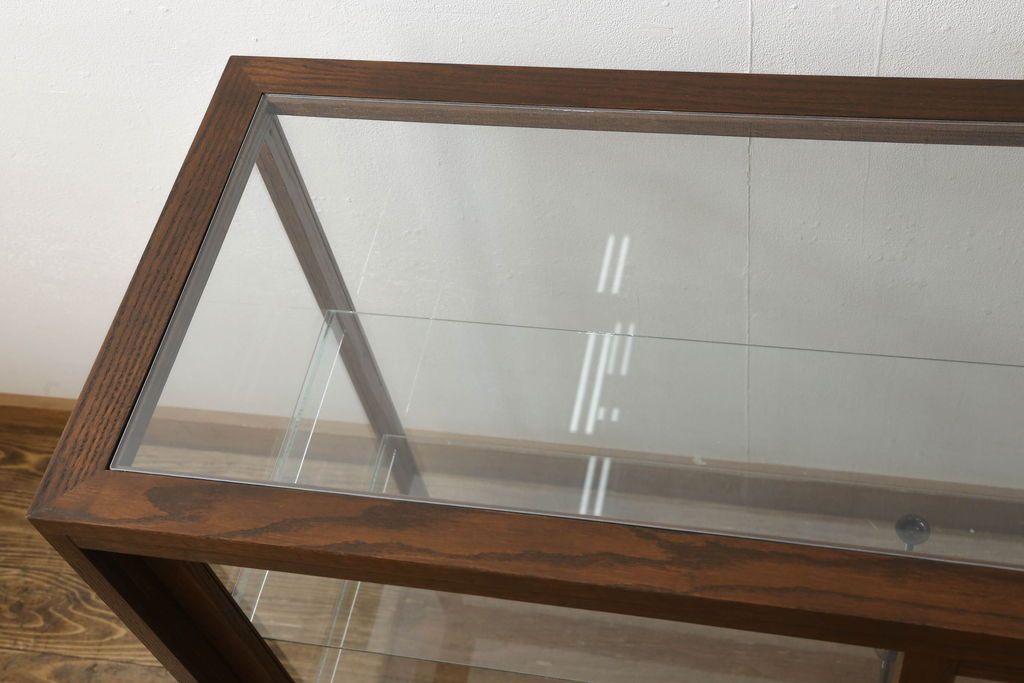 ガラスケース・ショーケース> カウンターショーケース > ガラスケースを新規製作!当店オーダー家具を参考に製作し、ガラス棚板2枚取り付け、補強の為棚板の真ん中に支えを取り付け。色味は当店商品を参考に着色。(ショーケース、陳列棚、飾り棚)