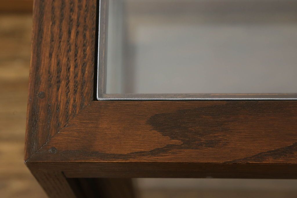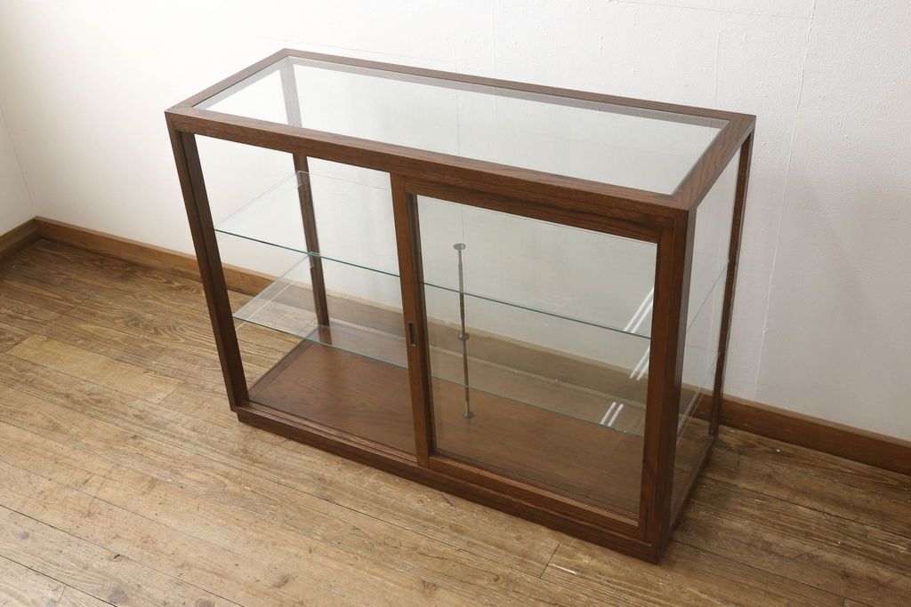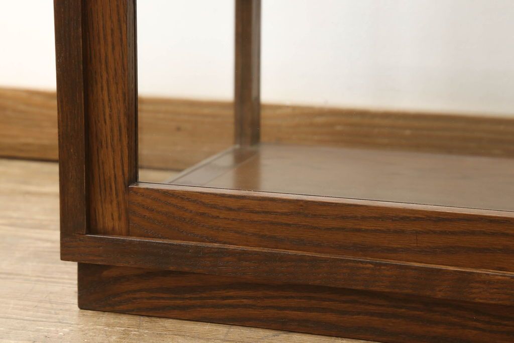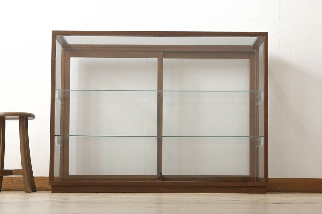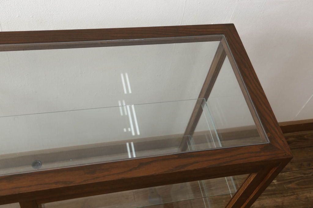 ガラスケース・ショーケース> カウンターショーケース > ガラスケースを新規製作!当店オーダー家具を参考に製作し、ガラス棚板2枚取り付け、補強の為棚板の真ん中に支えを取り付け。色味は当店商品を参考に着色。(ショーケース、陳列棚、飾り棚)