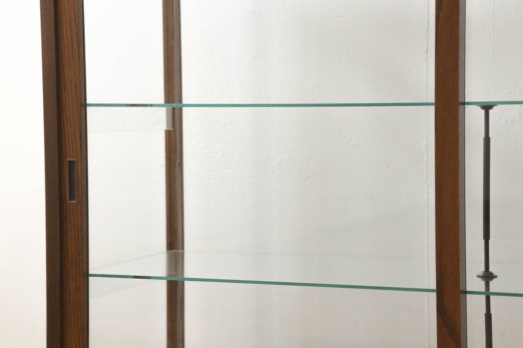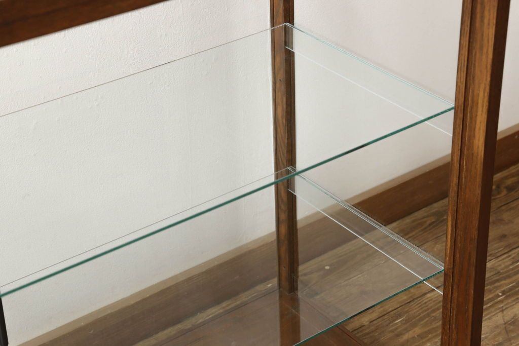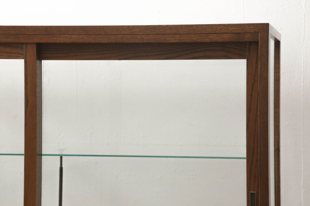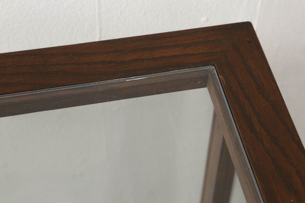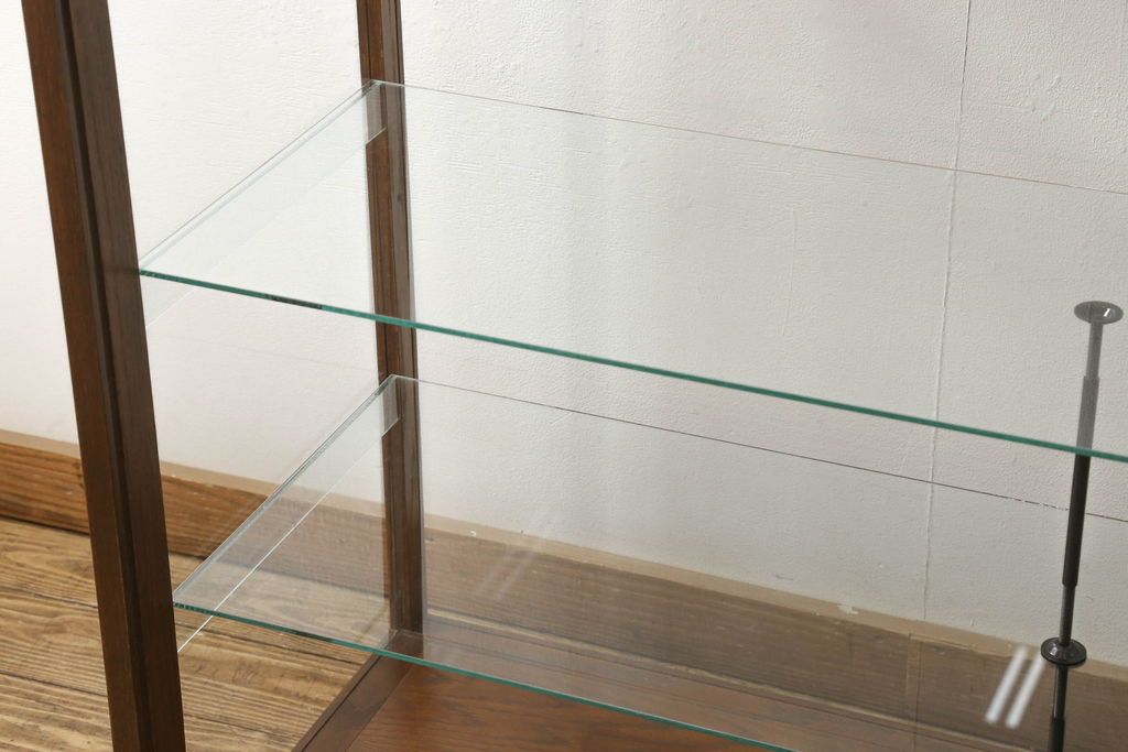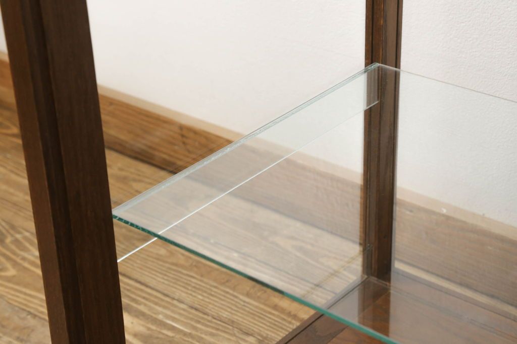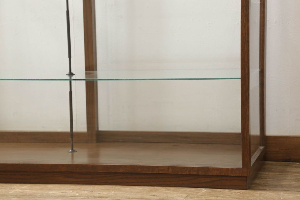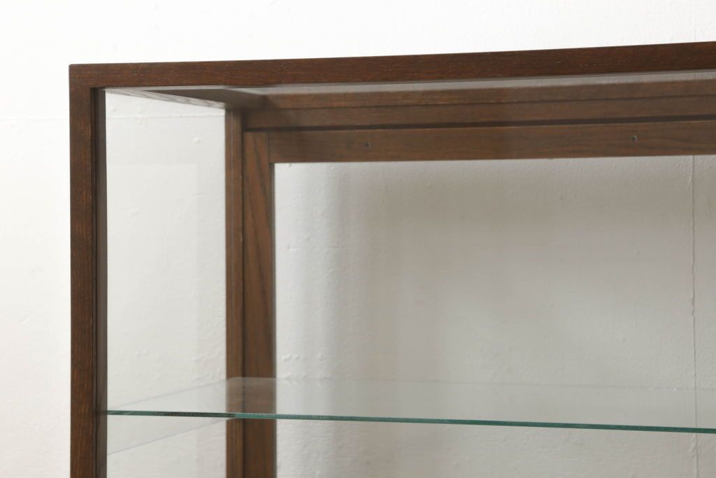 ガラスケース・ショーケース > ガラスケースを新規製作!当店オーダー家具を参考に製作し、ガラス棚板2枚取り付け、補強の為棚板の真ん中に支えを取り付け。色味は当店商品を参考に着色。(ショーケース、陳列棚、飾り棚)