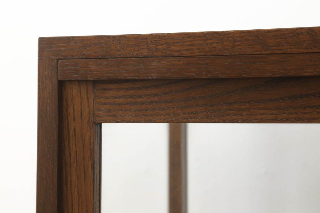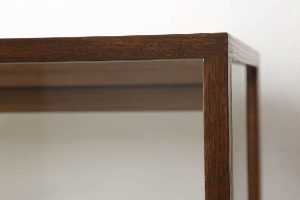 フルオーダー家具実績 > ガラスケースを新規製作!当店オーダー家具を参考に製作し、ガラス棚板2枚取り付け、補強の為棚板の真ん中に支えを取り付け。色味は当店商品を参考に着色。(ショーケース、陳列棚、飾り棚)