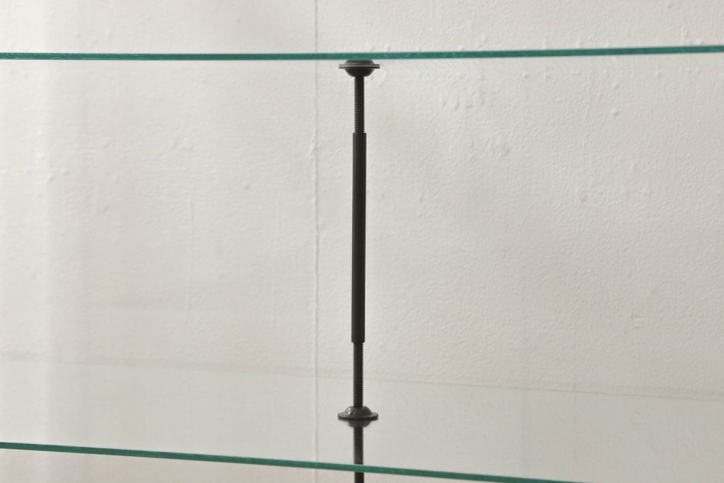 ◆棚板2枚(ガラスの棚板):補強の為、棚板の真ん中に支えを取り付けて仕上げ