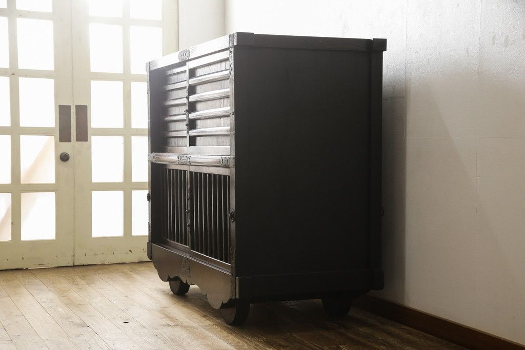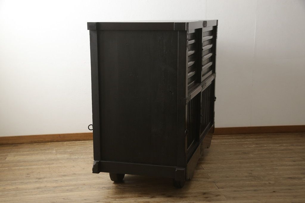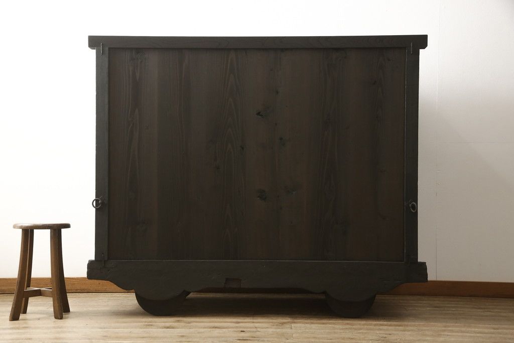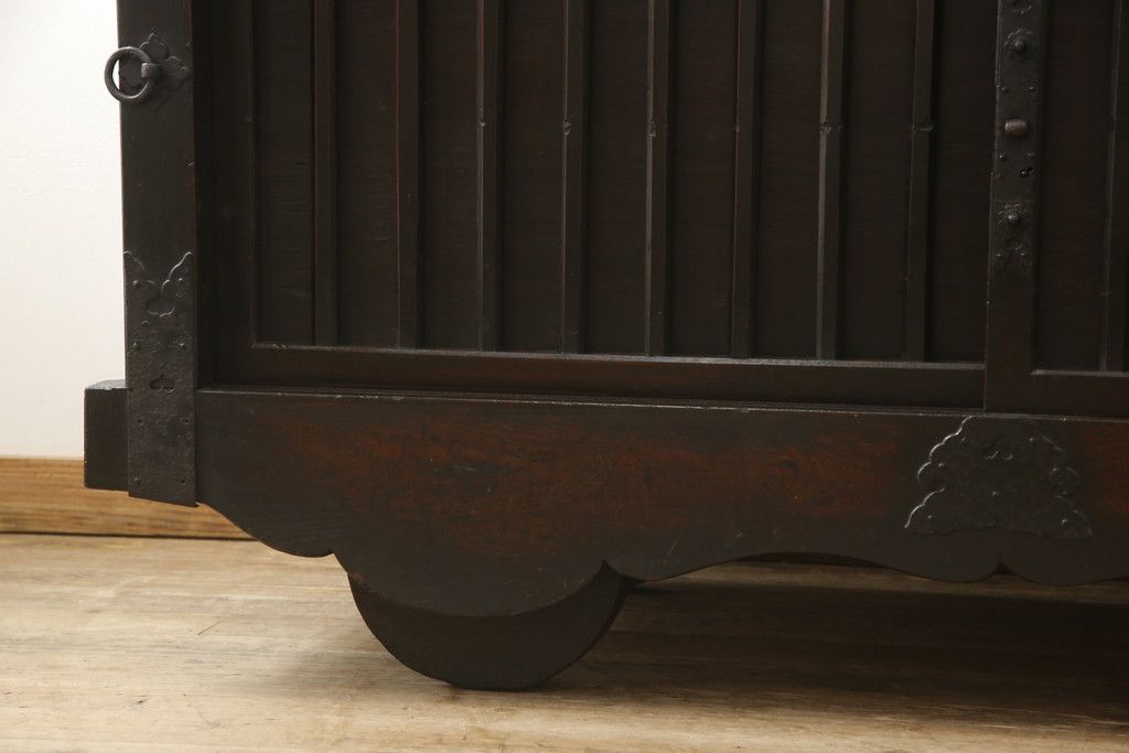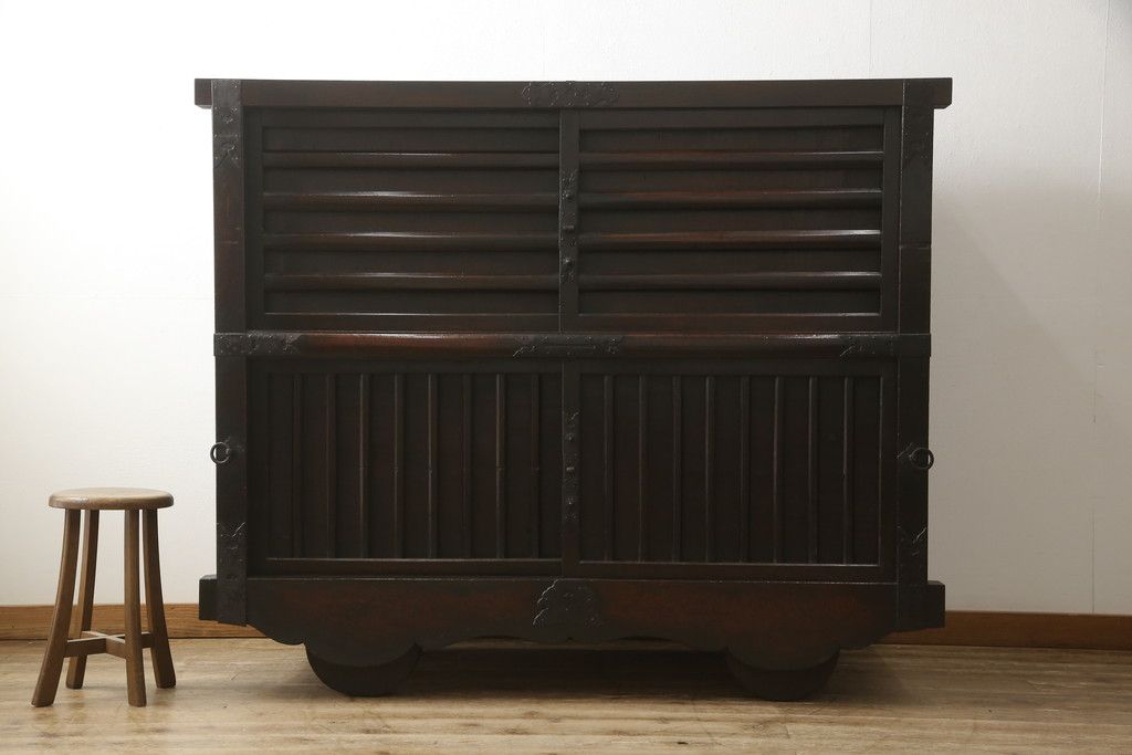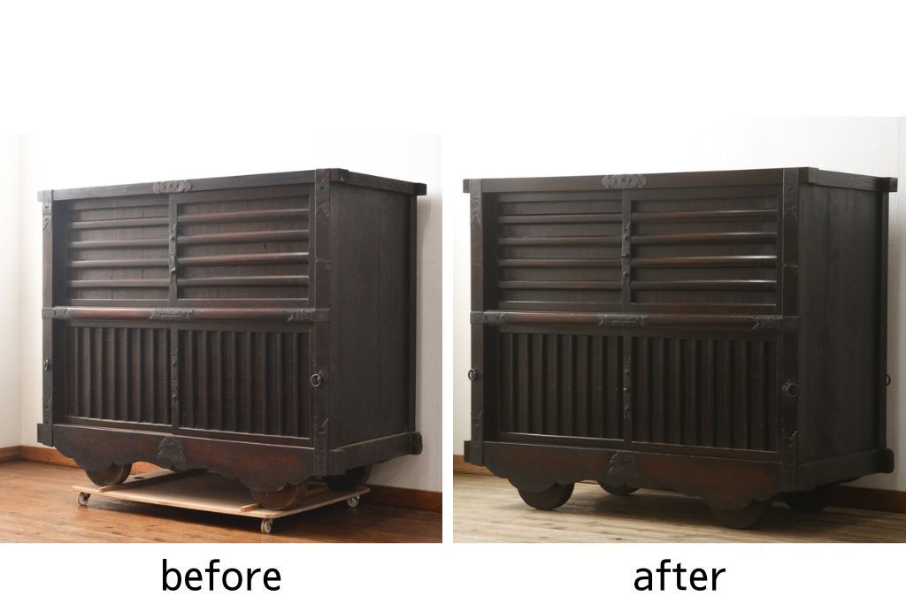 和箪笥> 車箪笥 > 大型車箪笥の見た目を変えずに綺麗にリペア!修繕箇所は本体と馴染ませ、現状のお品物に合わせて1トーン程落ち着いた色に着色して仕上げ。(時代箪笥、収納棚、戸棚)