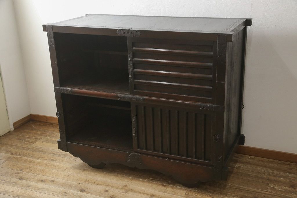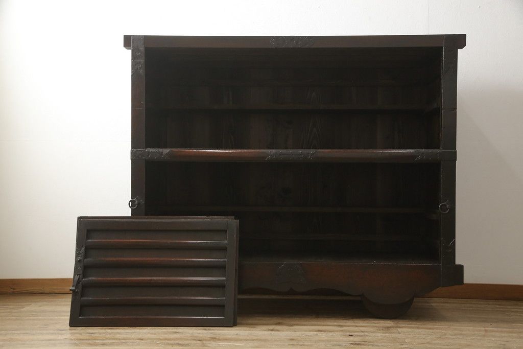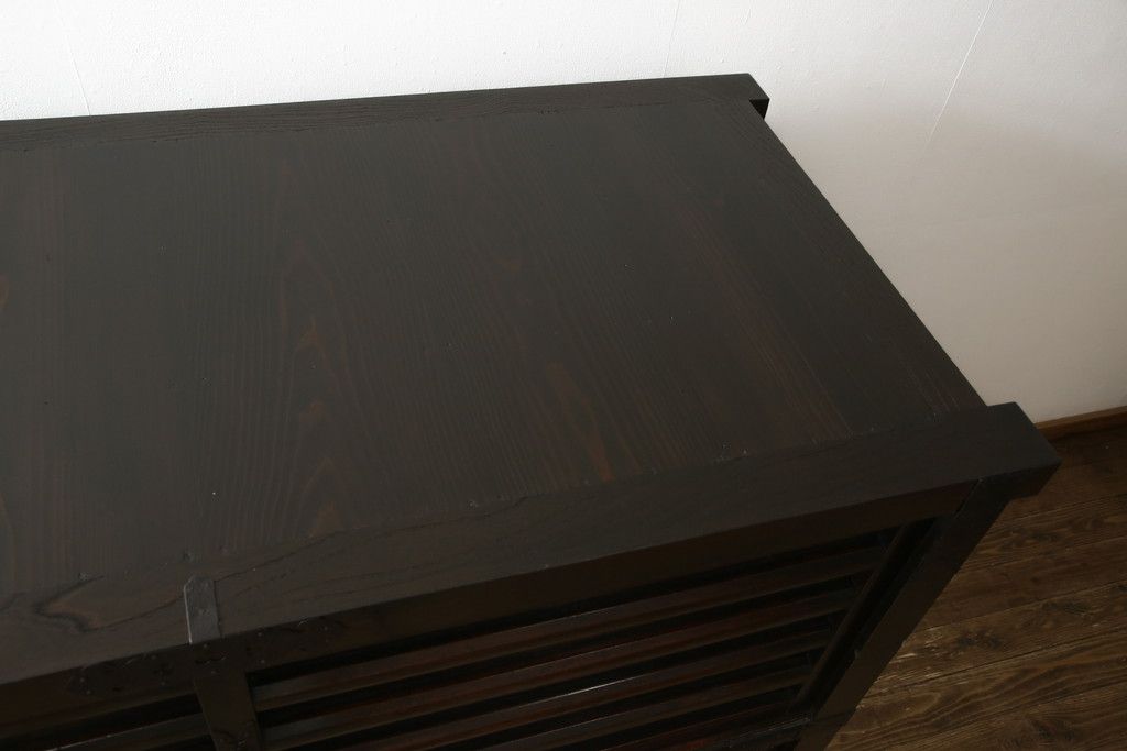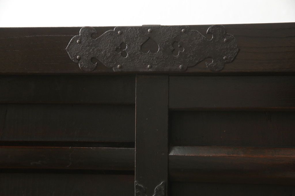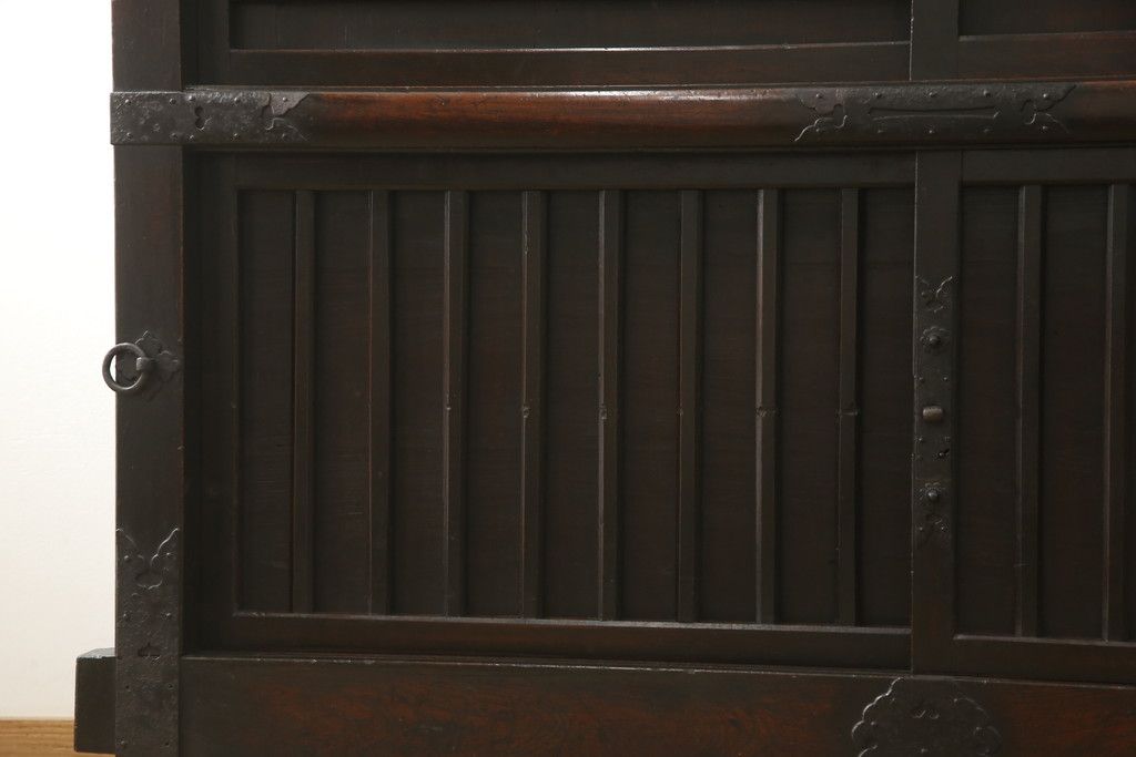 和箪笥 > 大型車箪笥の見た目を変えずに綺麗にリペア!修繕箇所は本体と馴染ませ、現状のお品物に合わせて1トーン程落ち着いた色に着色して仕上げ。(時代箪笥、収納棚、戸棚)