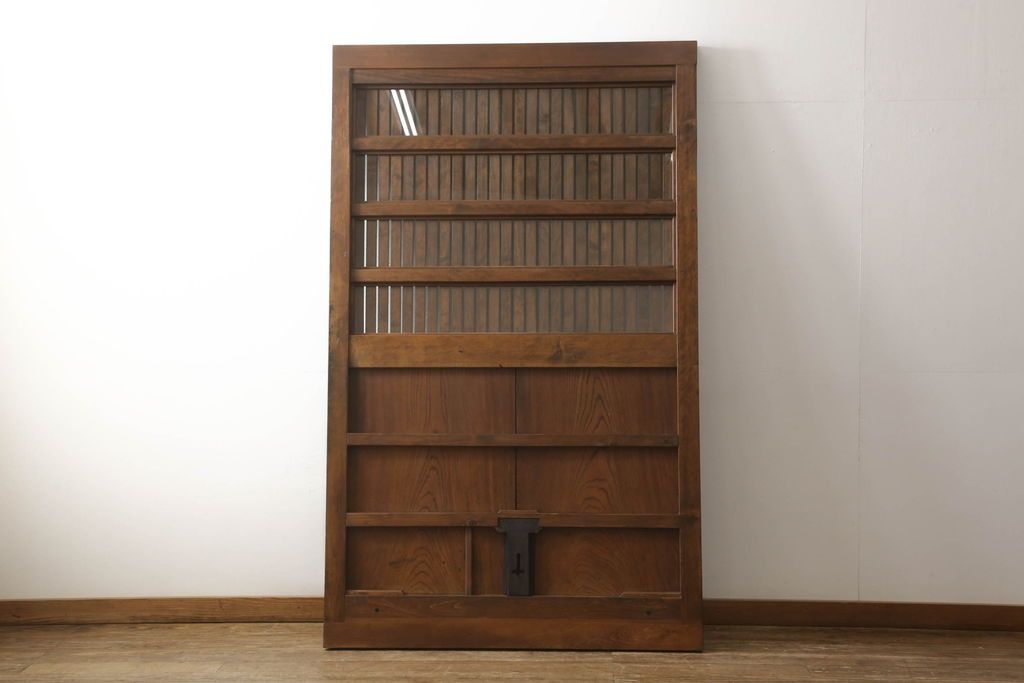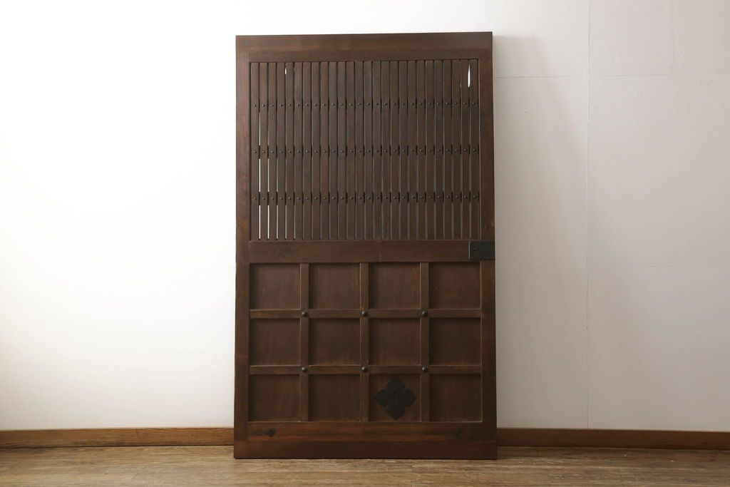 セミオーダー家具実績 > 蔵戸をリペア&カスタム!格子裏にクリアガラスはめ込み。指定の吊り金具を取り付けきるよう上下フラットとなるよう造作。既存の鉄金具は黒染めをし、外部用塗にて仕上げ。(玄関戸、引き戸、建具)