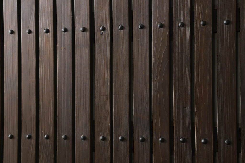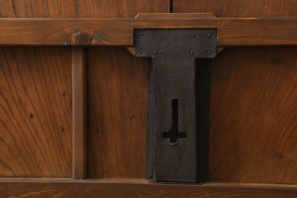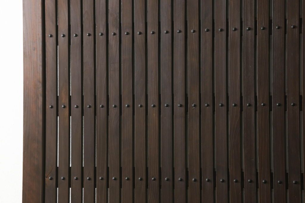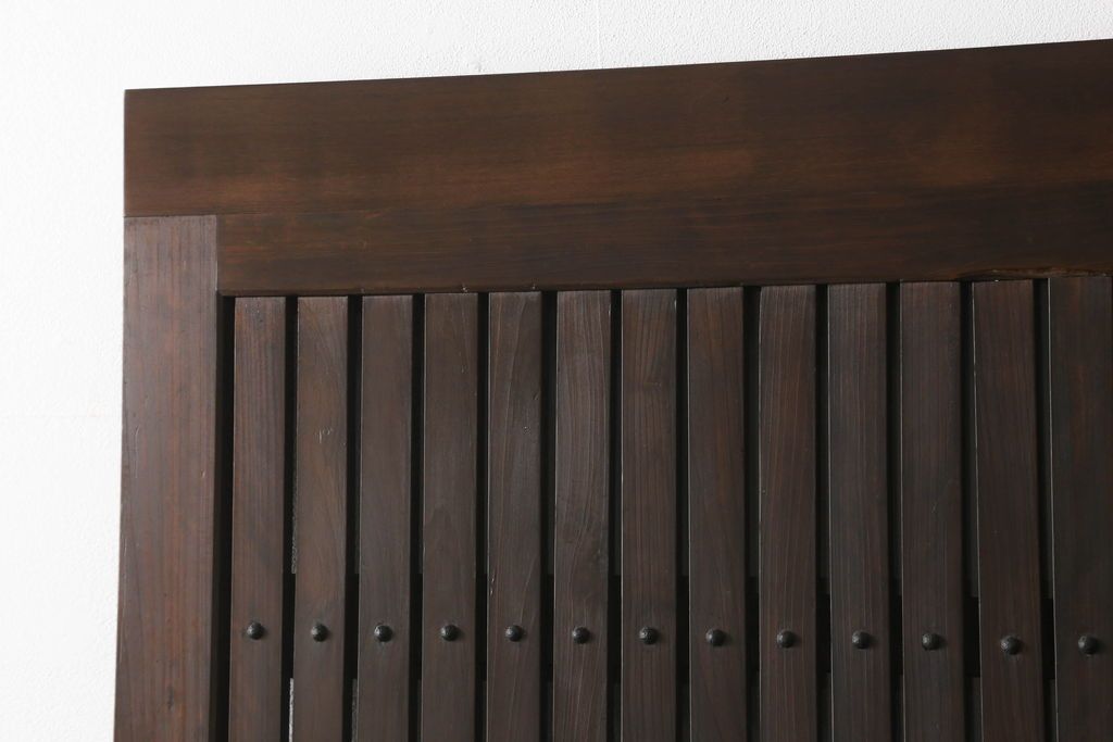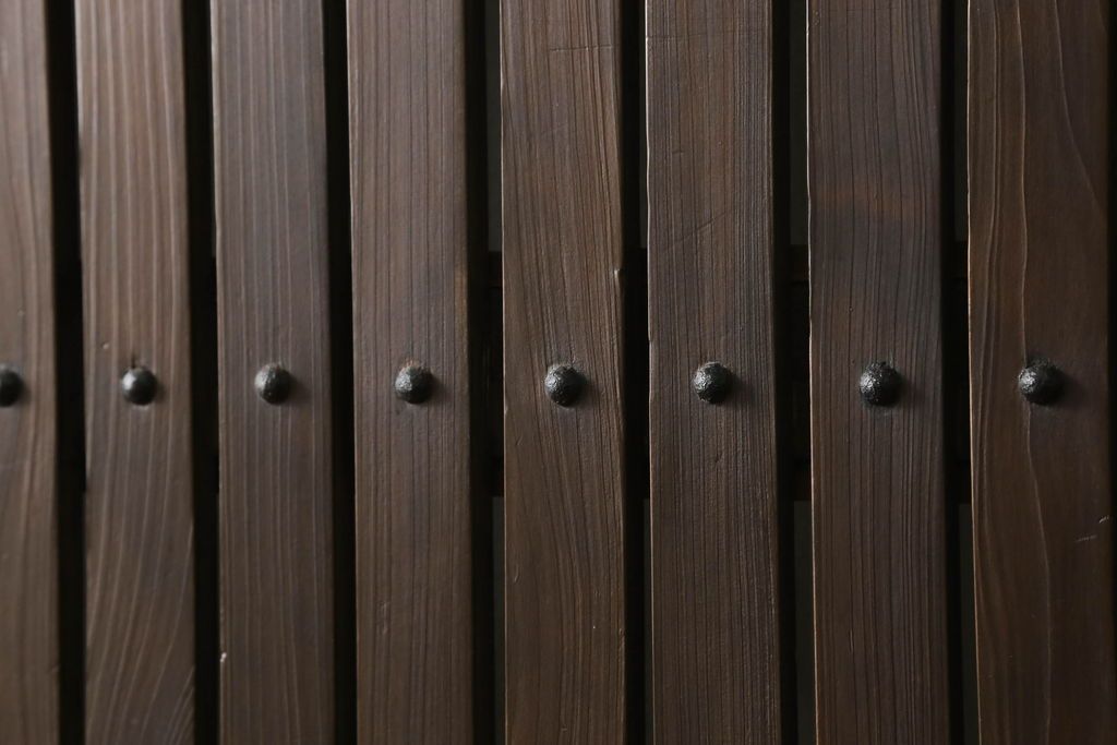 ドア・建具> 玄関ドア・玄関戸 > 蔵戸をリペア&カスタム!格子裏にクリアガラスはめ込み。指定の吊り金具を取り付けきるよう上下フラットとなるよう造作。既存の鉄金具は黒染めをし、外部用塗にて仕上げ。(玄関戸、引き戸、建具)