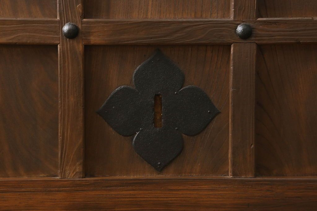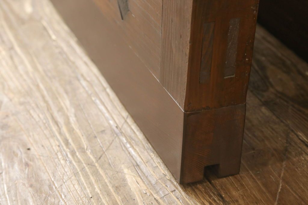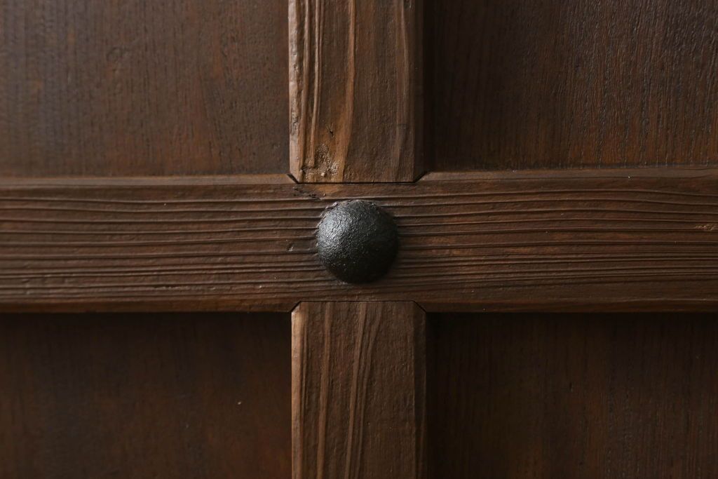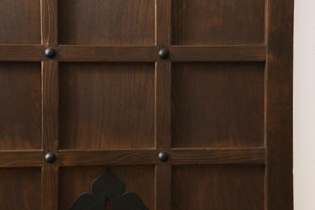 蔵戸をリペア&カスタム!格子裏にクリアガラスはめ込み。指定の吊り金具を取り付けきるよう上下フラットとなるよう造作。既存の鉄金具は黒染めをし、外部用塗にて仕上げ。(玄関戸、引き戸、建具)
