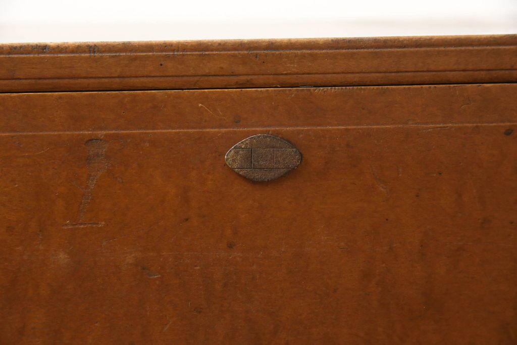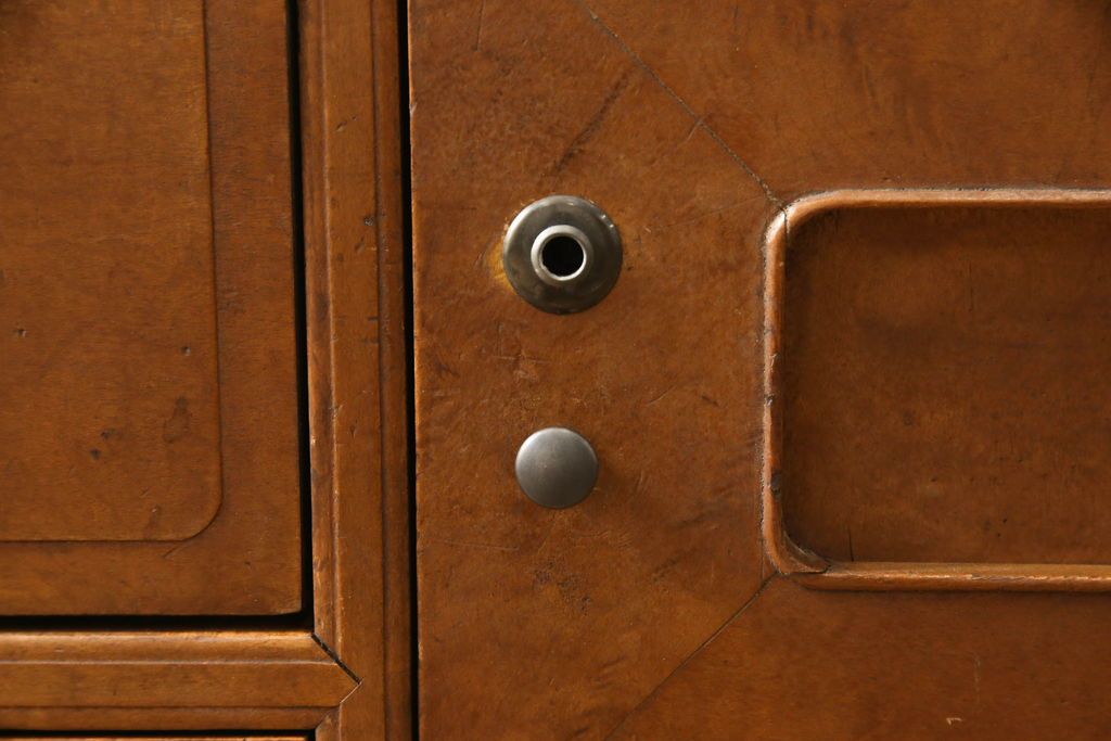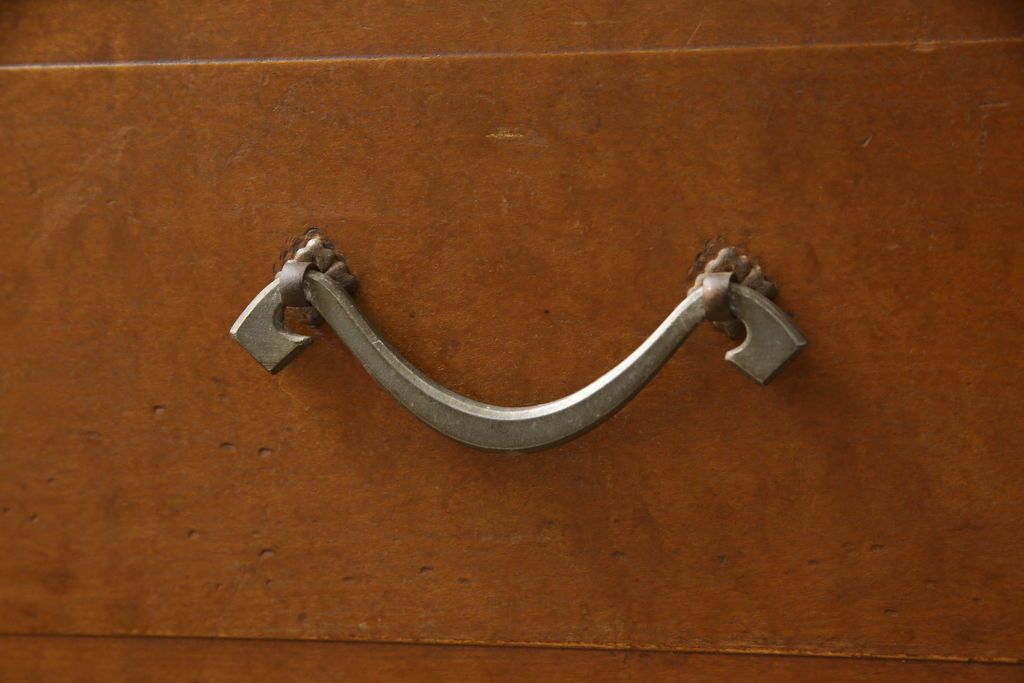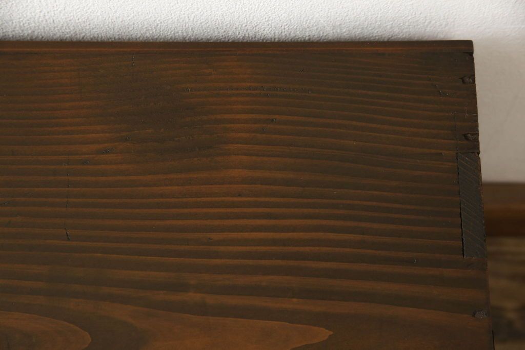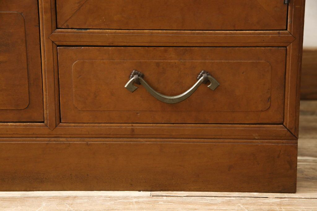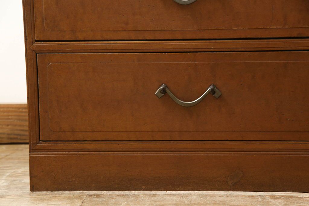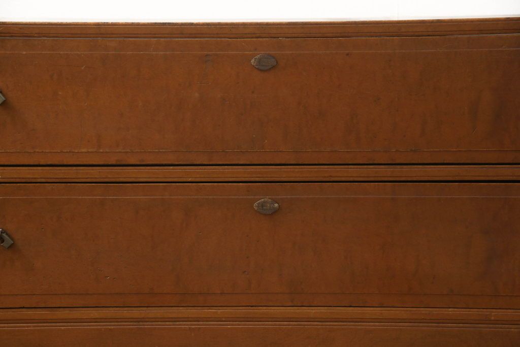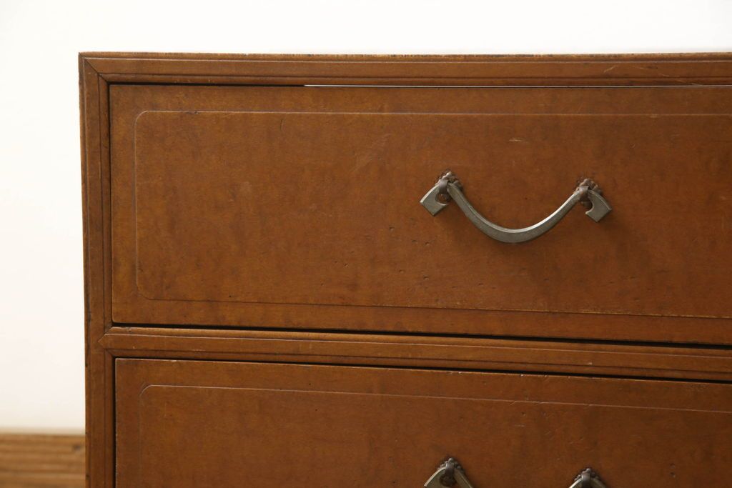 チェスト・引き出し> ローチェスト > チェストをリペア&カスタム!左側上段引き出しをフラップダウン扉仕様にし、背板を切り取り加工。修繕箇所は本体と馴染ませ、現状のお品物に合わせて1トーン程落ち着いた色に着色。(ローボード)