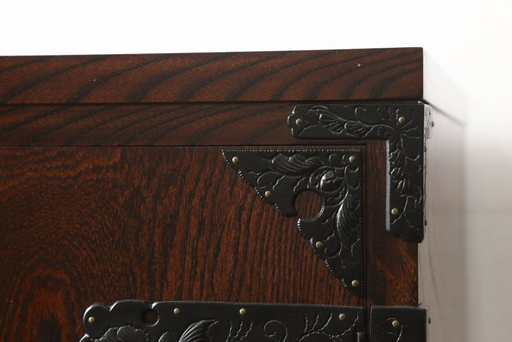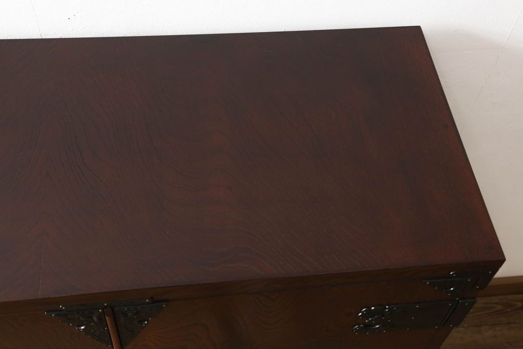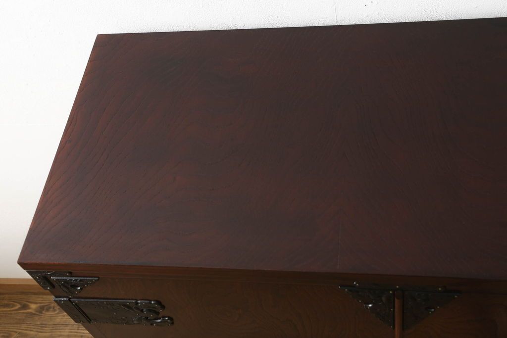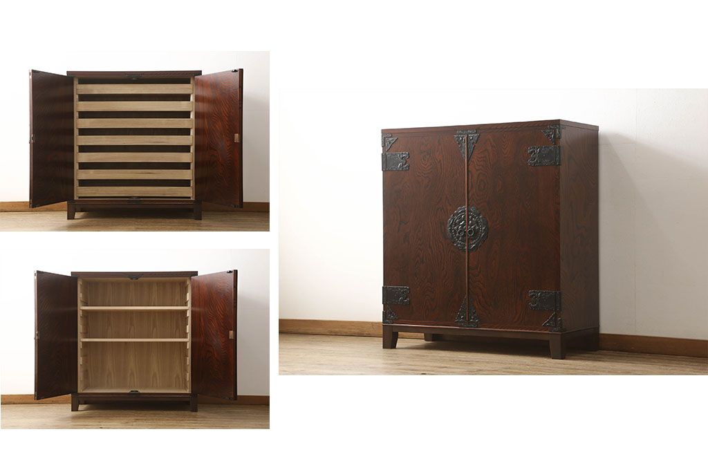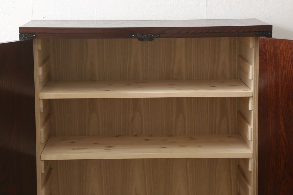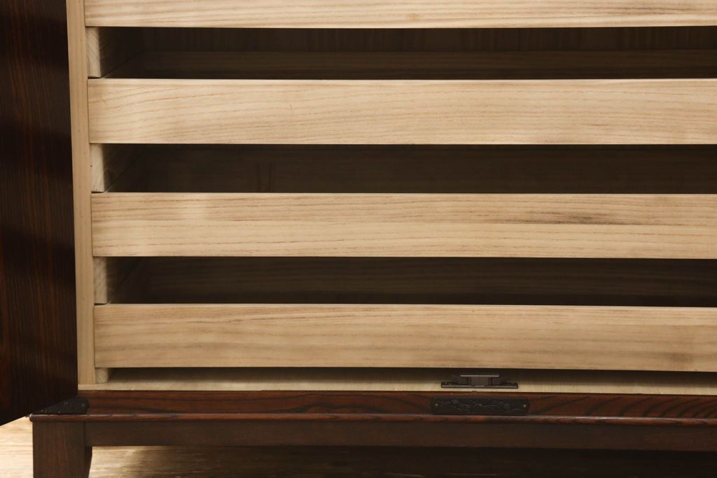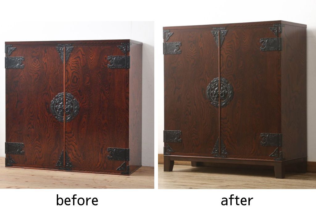 民芸家具 > サイドボードをリペア&カスタム!棚板を2枚新規製作し、脚を取り付け。現状のお品物に合わせて1トーン程落ち着いた色に着色。(引き出し、着物箪笥、衣装タンス、収納箪笥)