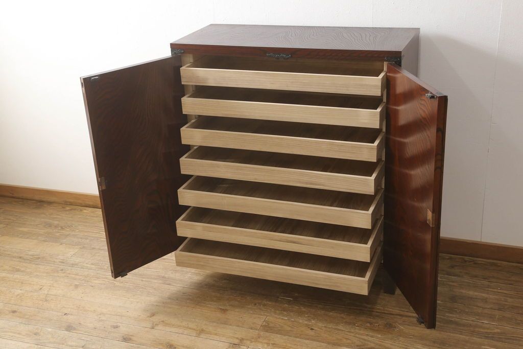 和箪笥> 着物箪笥 > サイドボードをリペア&カスタム!棚板を2枚新規製作し、脚を取り付け。現状のお品物に合わせて1トーン程落ち着いた色に着色。(引き出し、着物箪笥、衣装タンス、収納箪笥)