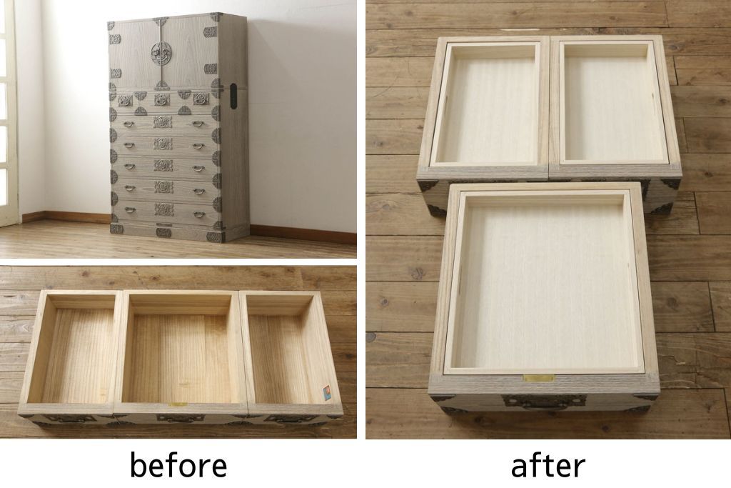 セミオーダー家具実績 > 総桐箪笥をリペア&カスタム!中央の小引き出しに内部トレー及びトレー支えを製作。(桐箪笥、和タンス、衣装箪笥、着物箪笥、桐たんす)