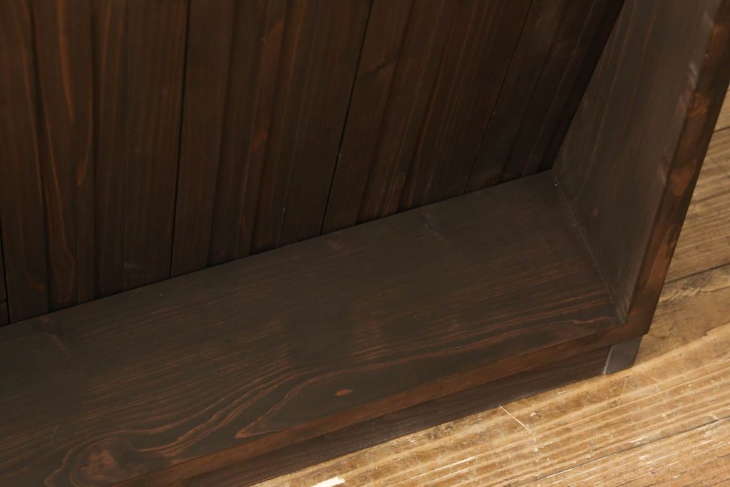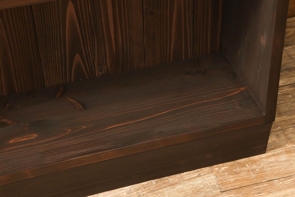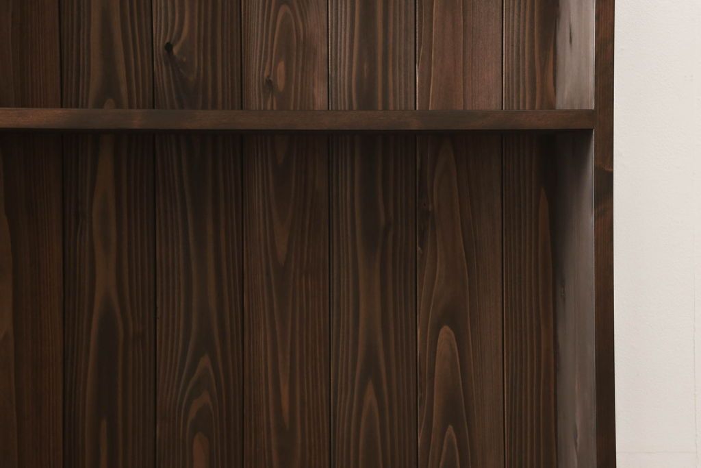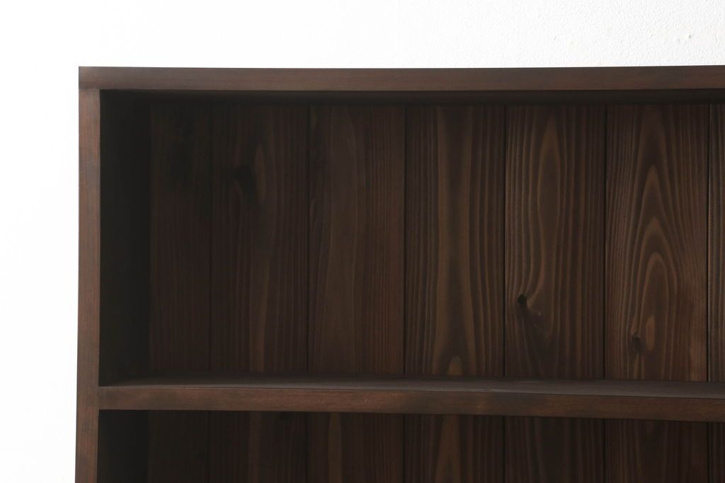 オープンラック・シェルフ> 本棚 > ブックシェルフを新規製作!当店の商品を参考にしたデザイン・希望のサイズにて。配線穴開け加工をし、色味は茶色1色に着色。(収納棚、本棚、ウッドシェルフ)