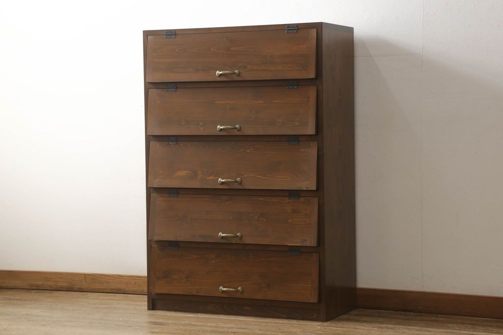 ワードローブ・ロッカー> ロッカー > パタパタ収納を新規製作!希望のサイズにて、5段・下開き扉仕様。取っ手を取り付け、参考画像の色味に合わせて仕上げ。(下駄箱、キャビネット、戸棚、ロッカー)