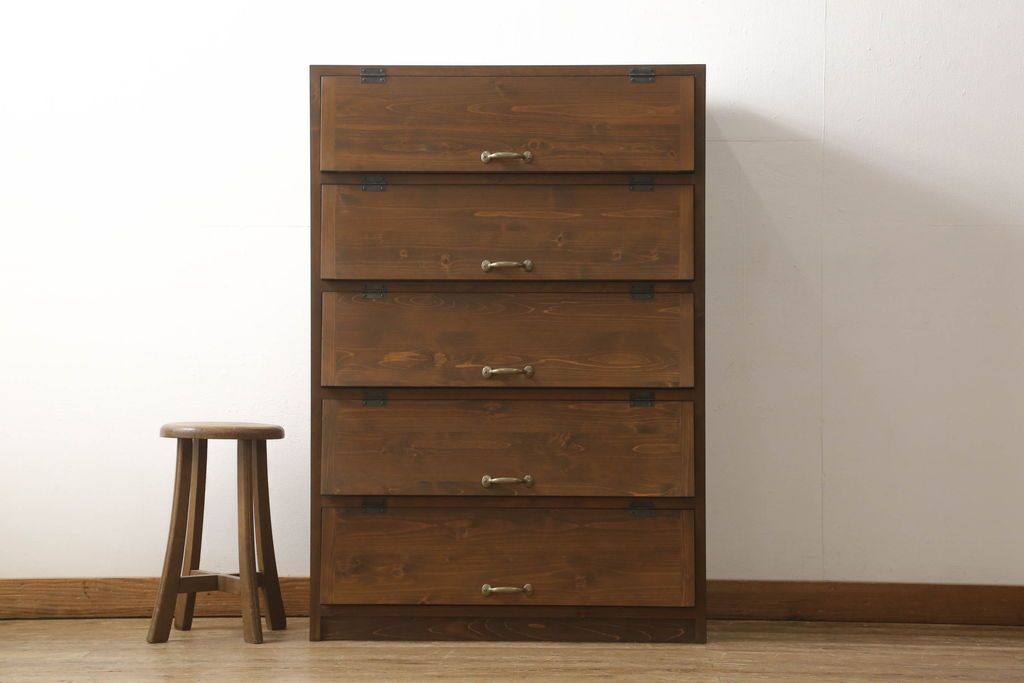 ワードローブ・ロッカー > パタパタ収納を新規製作!希望のサイズにて、5段・下開き扉仕様。取っ手を取り付け、参考画像の色味に合わせて仕上げ。(下駄箱、キャビネット、戸棚、ロッカー)