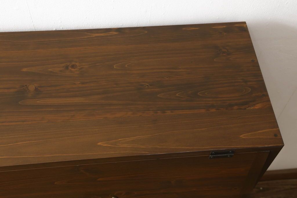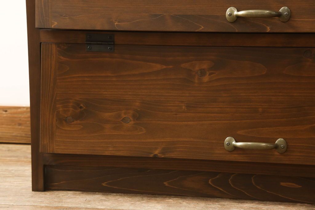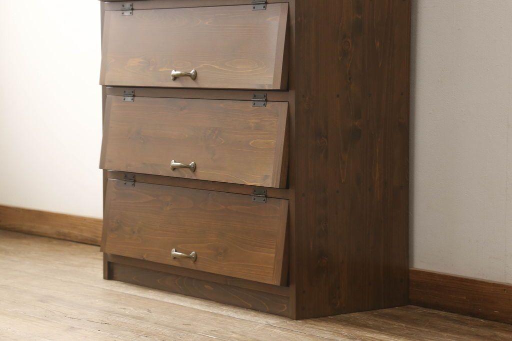 パタパタ収納を新規製作!希望のサイズにて、5段・下開き扉仕様。取っ手を取り付け、参考画像の色味に合わせて仕上げ。(下駄箱、キャビネット、戸棚、ロッカー)