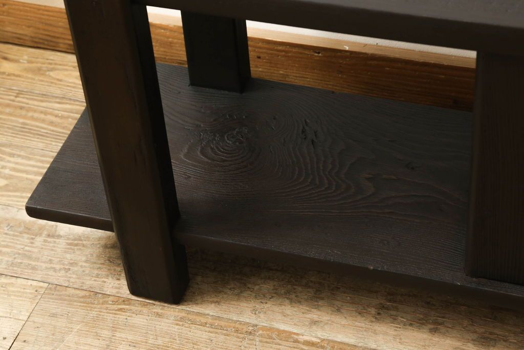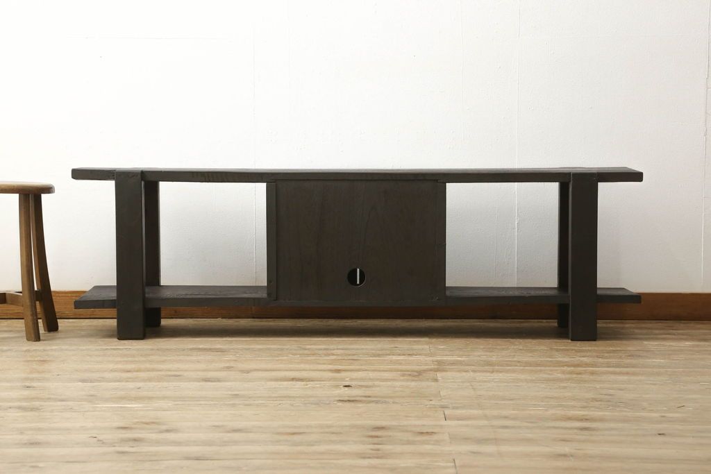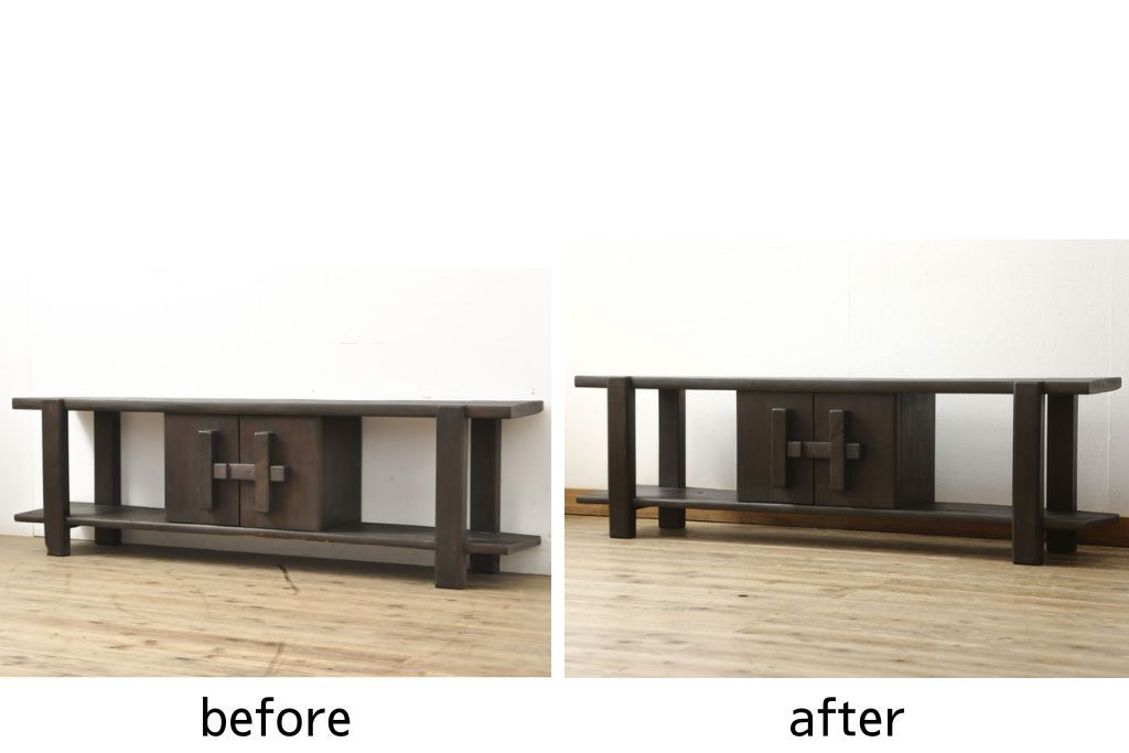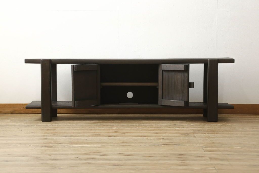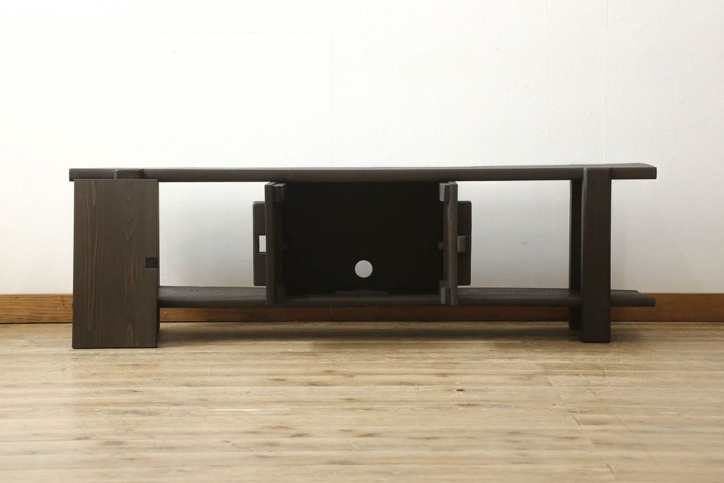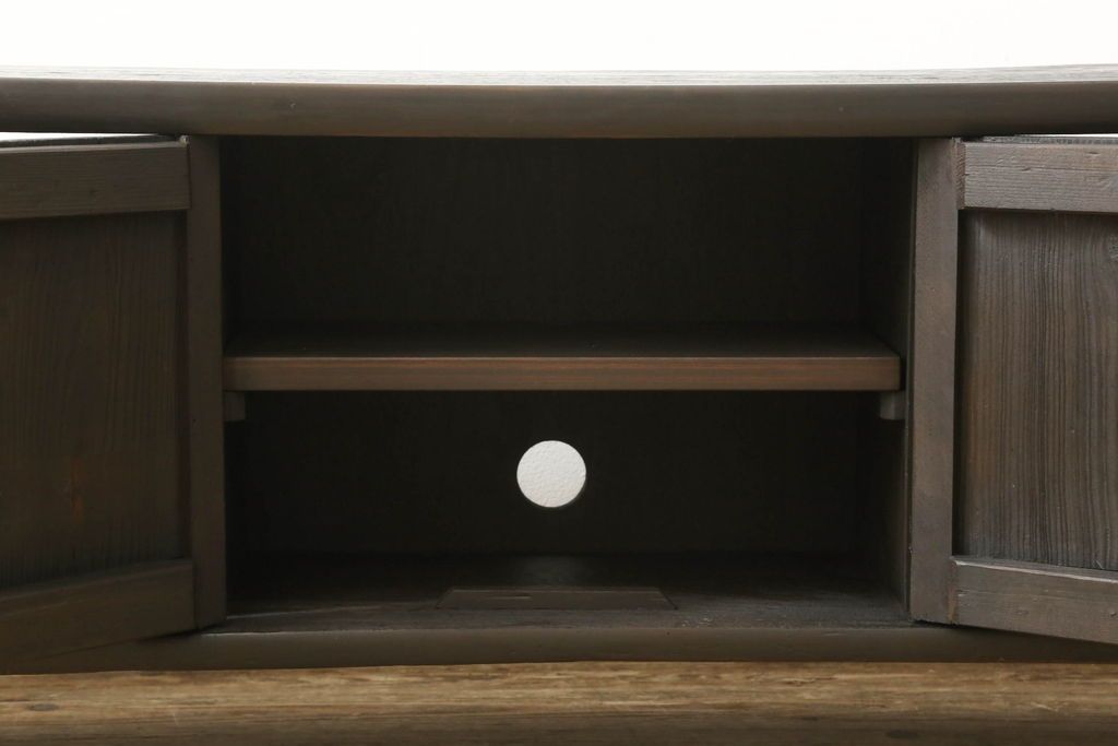 ロータイプ飾り棚をリペア&カスタム!下段背面に配線用の穴開け加工。取り外し可能な棚板を製作し、棚板の配線通し加工。(テレビ台、飾り台、ローボード、ヴィンテージ)