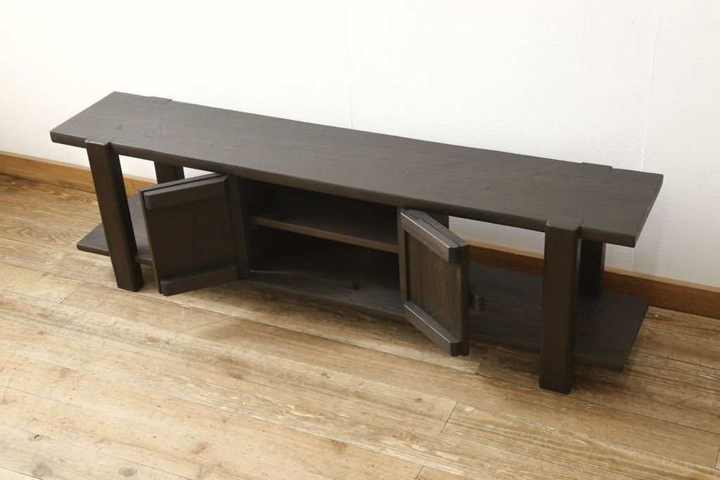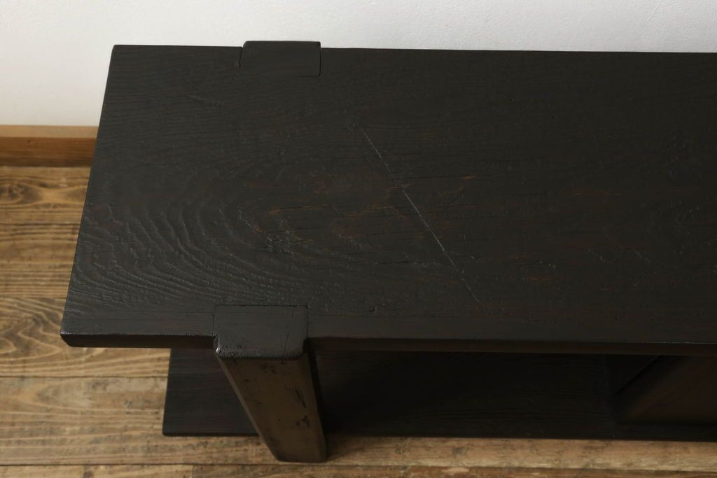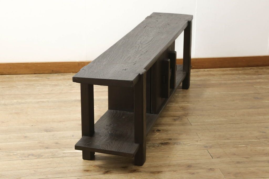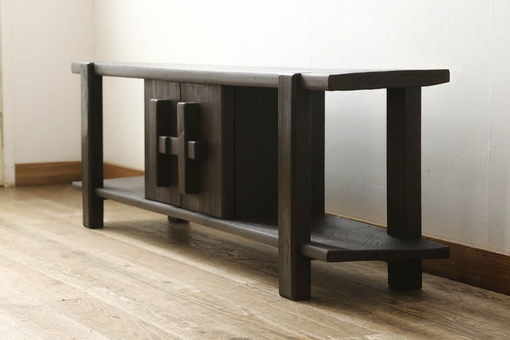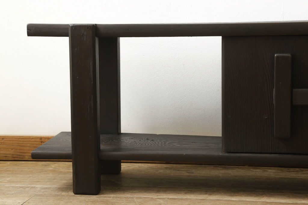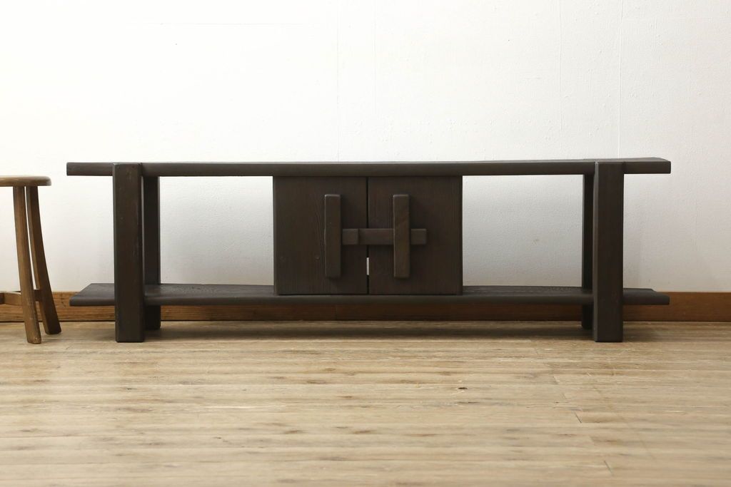 ロータイプ飾り棚をリペア&カスタム!下段背面に配線用の穴開け加工。取り外し可能な棚板を製作し、棚板の配線通し加工。(テレビ台、飾り台、ローボード、ヴィンテージ)