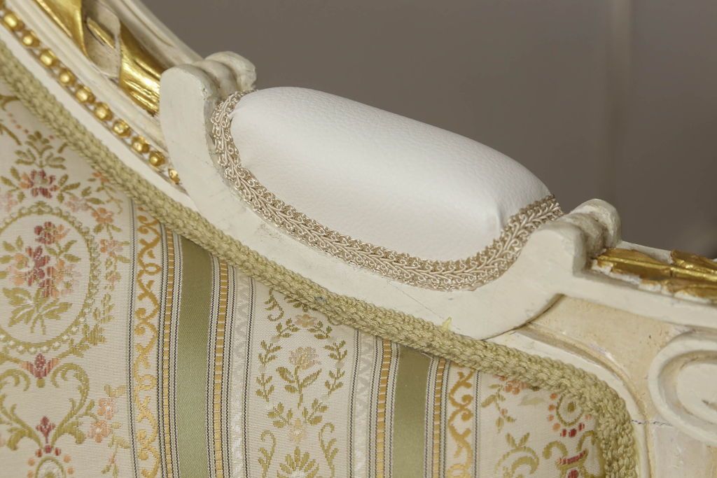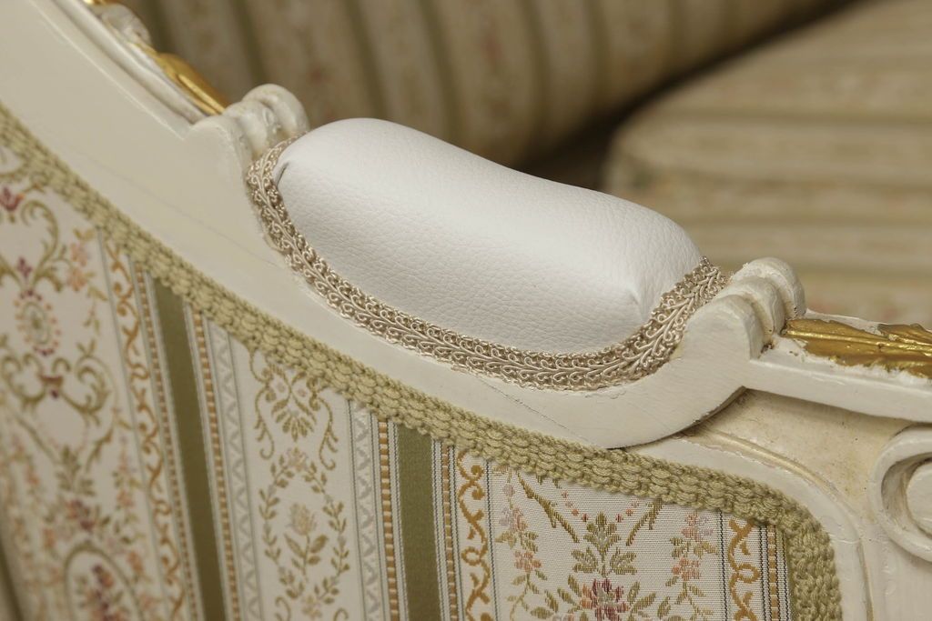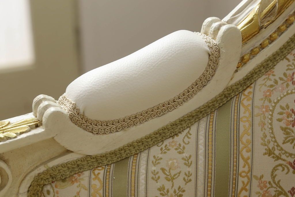 3人掛けソファをリペア&カスタム!ご希望のフェイクレザーで左右アームの張地を張り替え、ブレードも取り付け。(三人掛け、3P)