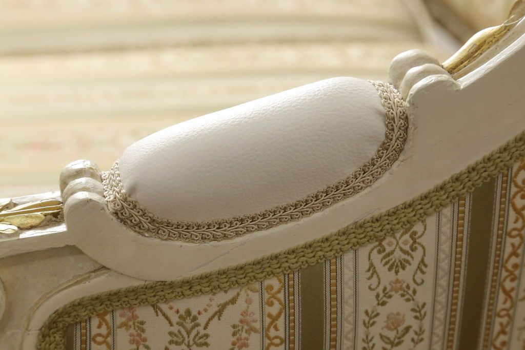・使用する張地:フェイクレザーアームの枠(木部部分)のお色にできるだけ近しいお色味にて、サンゲツカタログの中から選定