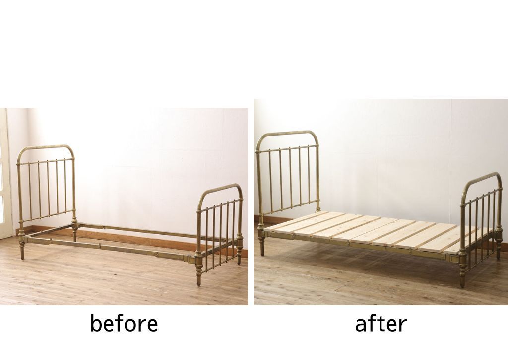 ベッド > 真鍮製ベッドフレームをリペア&カスタム!ベッドの床面サイズに合わせて、新材ですのこを製作。分割できる仕様に。(シングルサイズ)