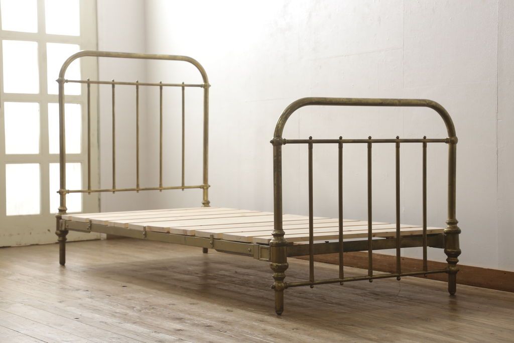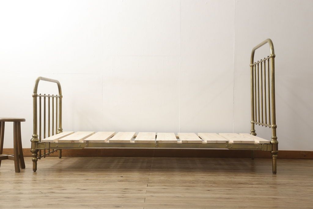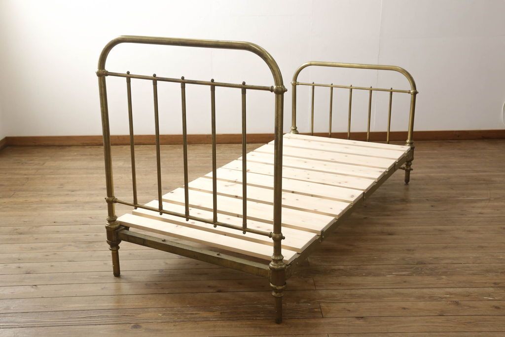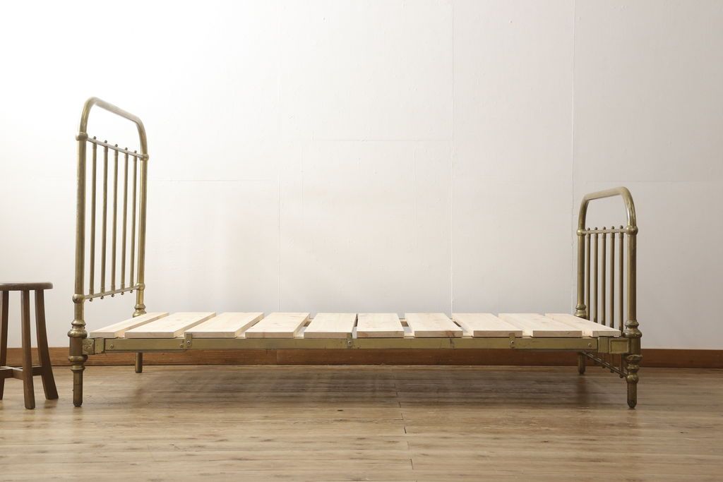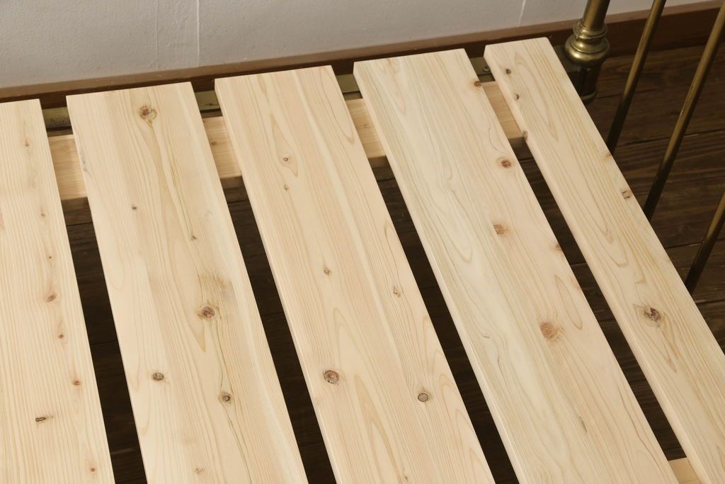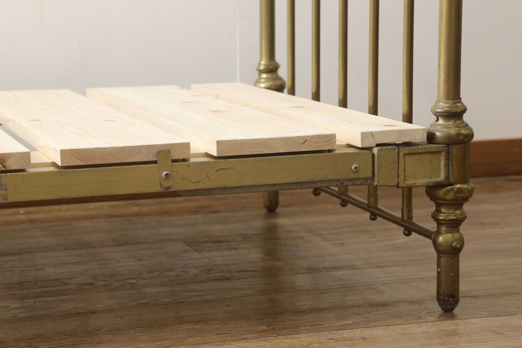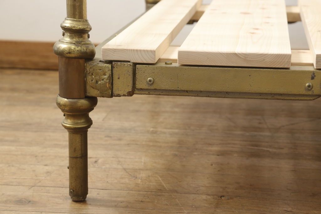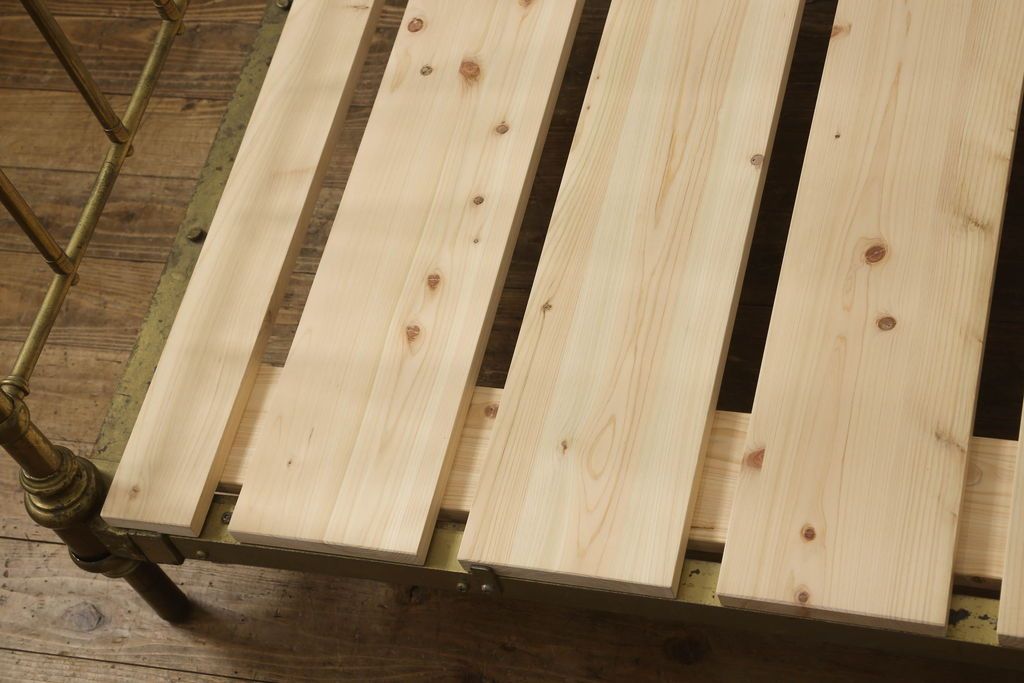 ベッド> シングル > 真鍮製ベッドフレームをリペア&カスタム!ベッドの床面サイズに合わせて、新材ですのこを製作。分割できる仕様に。(シングルサイズ)
