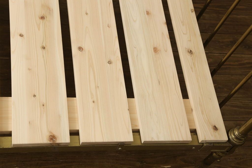 真鍮製ベッドフレームをリペア&カスタム!ベッドの床面サイズに合わせて、新材ですのこを製作。分割できる仕様に。(シングルサイズ)