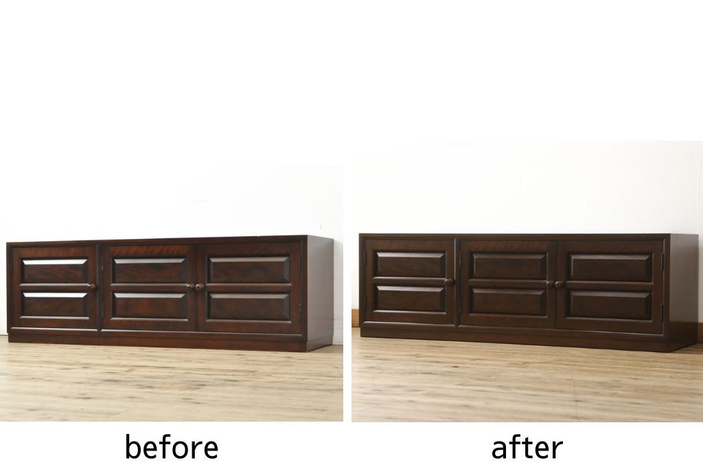 民芸家具 > テレビ台をリペア&カスタム!配線穴開け加工を施し、本体は元の色味をベースに仕上げ。(テレビボード、ローボード、リビングボード、収納棚、戸棚、サイドボード)