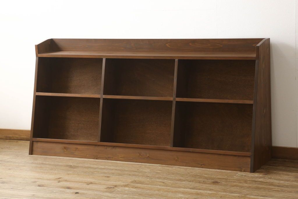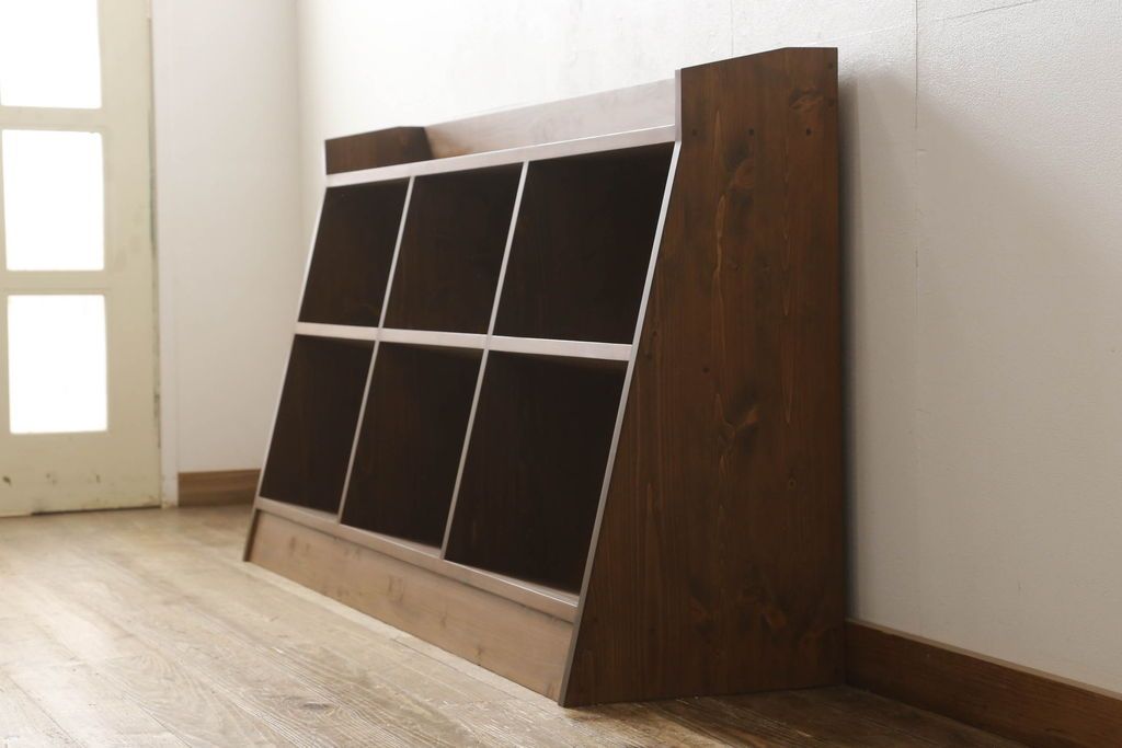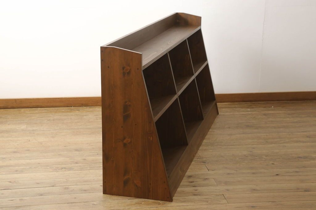 ワードローブ・ロッカー> ロッカー > 台形本棚を新規製作!当店のオーダー家具を参考に、台形デザインで天板部分の仕切りはなくフラットな仕様にて。(オープンラック、ブックシェルフ、ロッカー)