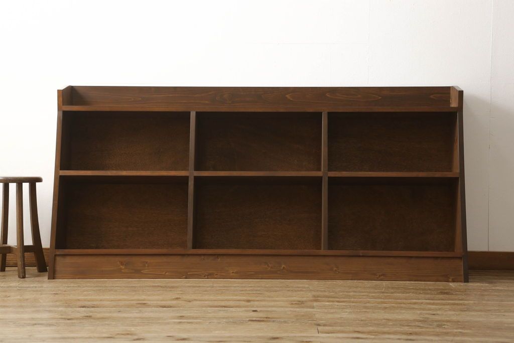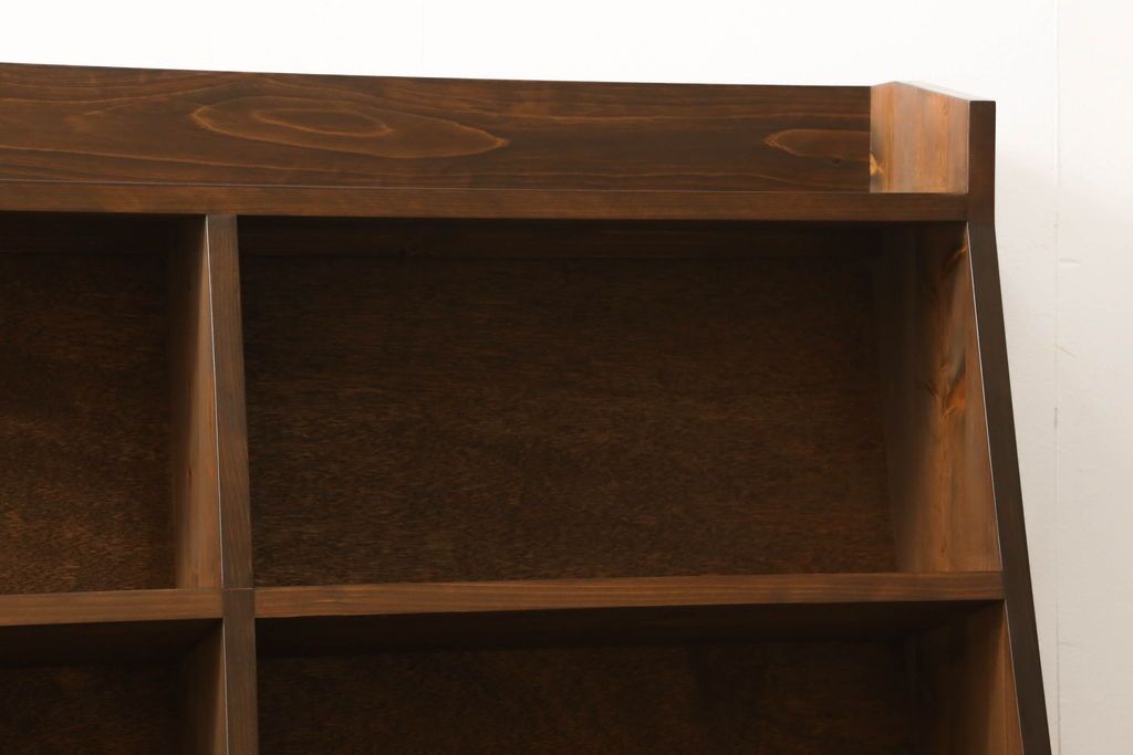 オープンラック・シェルフ> 本棚 > 台形本棚を新規製作!当店のオーダー家具を参考に、台形デザインで天板部分の仕切りはなくフラットな仕様にて。(オープンラック、ブックシェルフ、ロッカー)