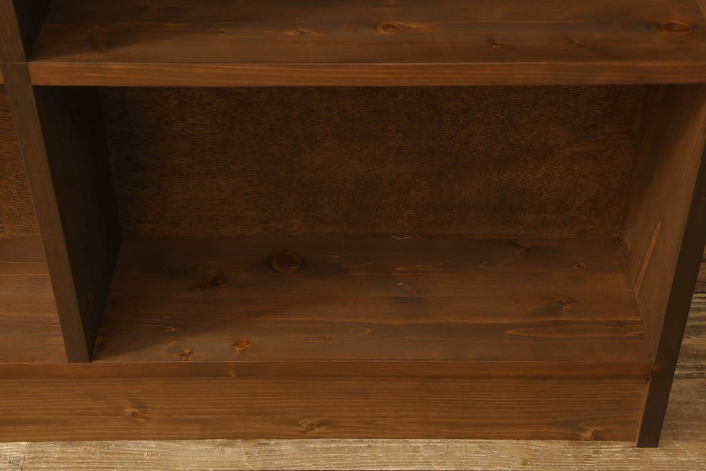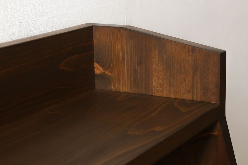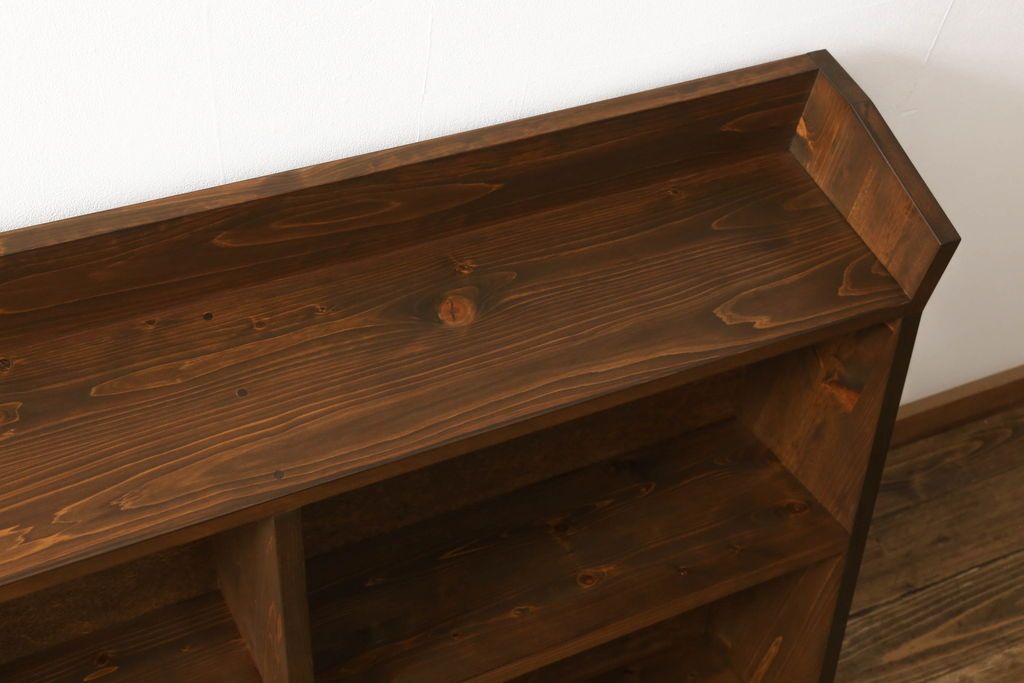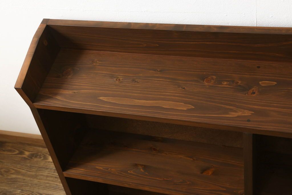 台形本棚を新規製作!当店のオーダー家具を参考に、台形デザインで天板部分の仕切りはなくフラットな仕様にて。(オープンラック、ブックシェルフ、ロッカー)