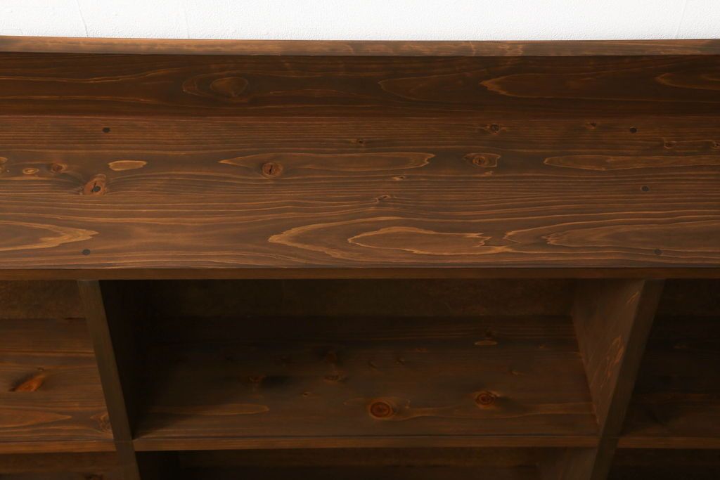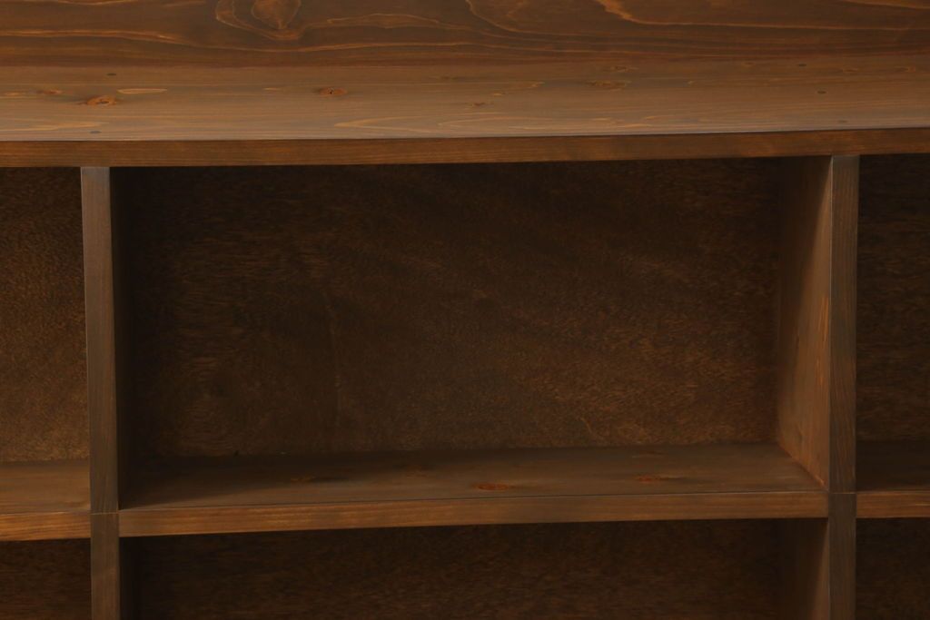 ワードローブ・ロッカー > 台形本棚を新規製作!当店のオーダー家具を参考に、台形デザインで天板部分の仕切りはなくフラットな仕様にて。(オープンラック、ブックシェルフ、ロッカー)