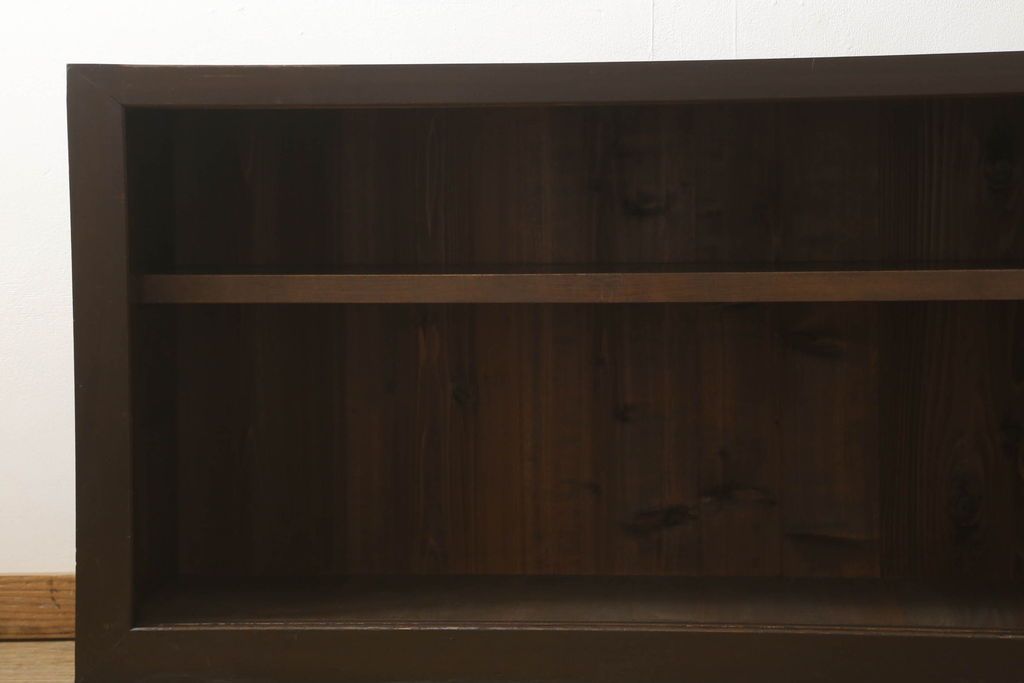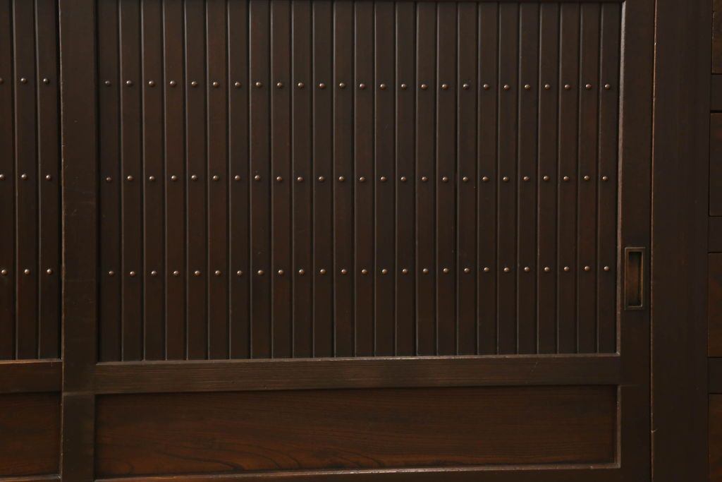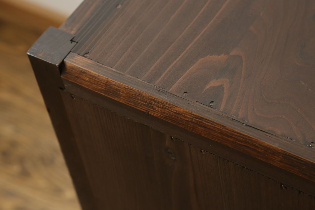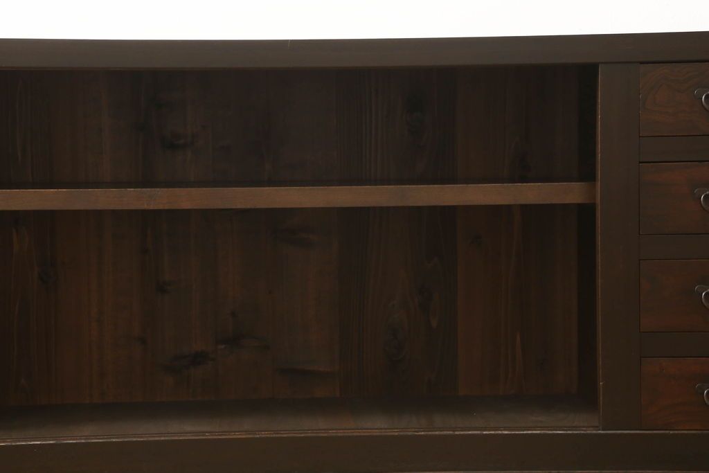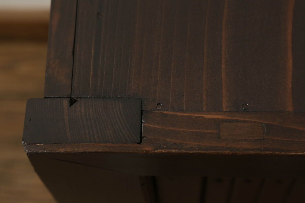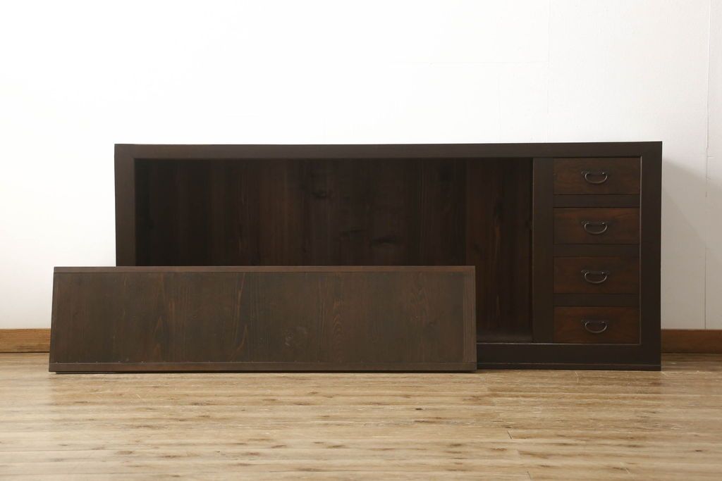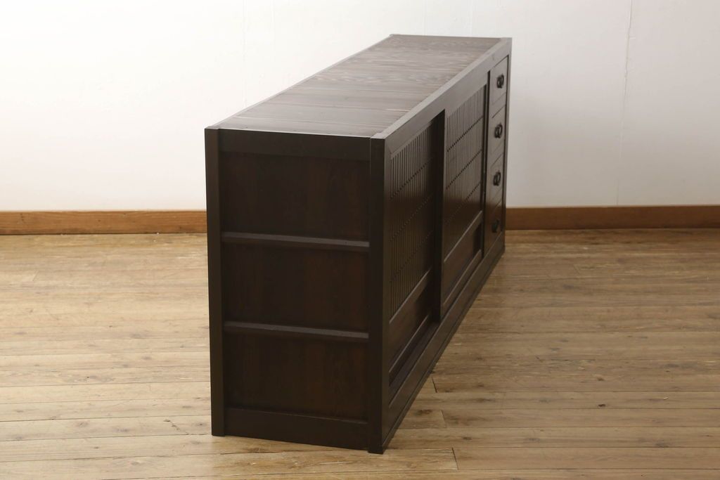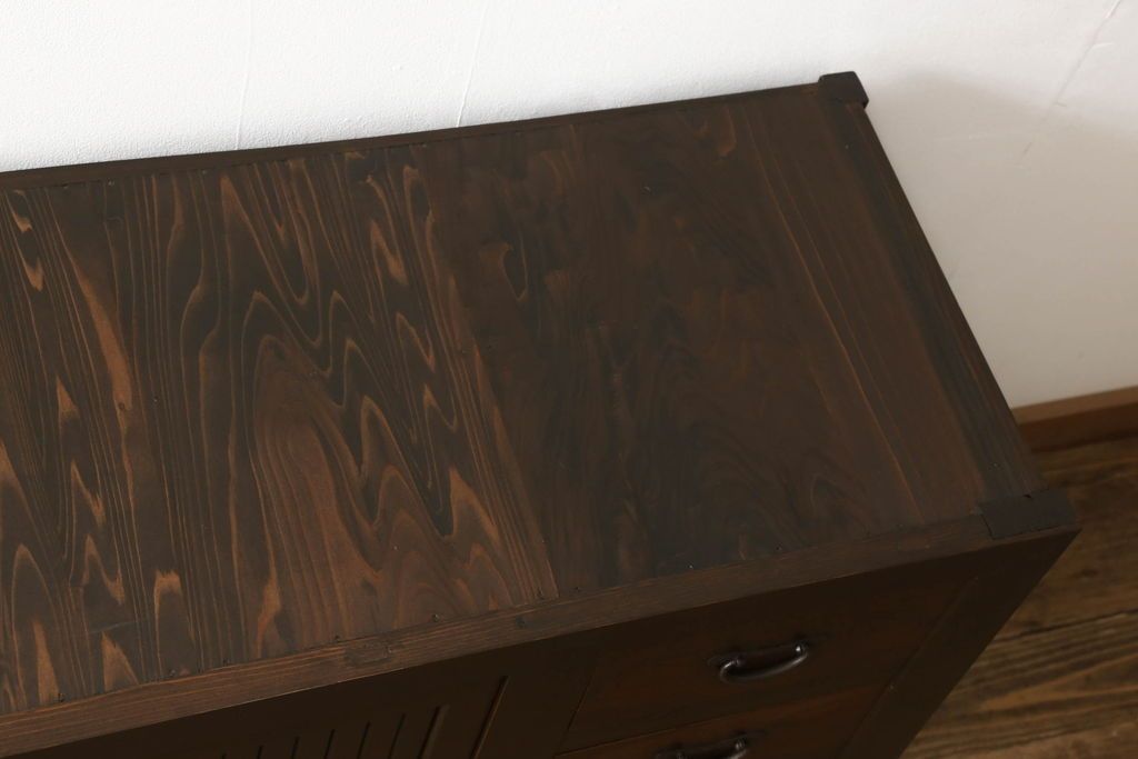 和箪笥> 水屋箪笥 > 近江水屋箪笥テレビ台をリペア&カスタム!奥行をリサイズし、既存の棚板は取り外しできる仕様に加工。修繕箇所は本体と馴染ませ、現状のお品物に合わせて1トーン程落ち着いた色に着色。(キャビネット、戸棚)