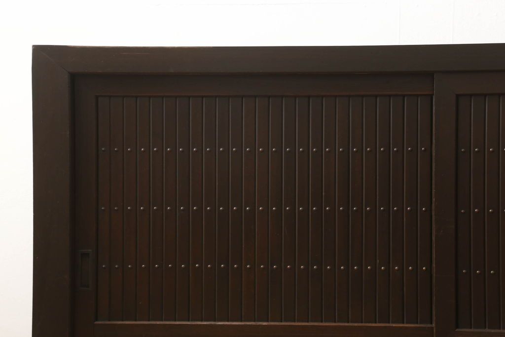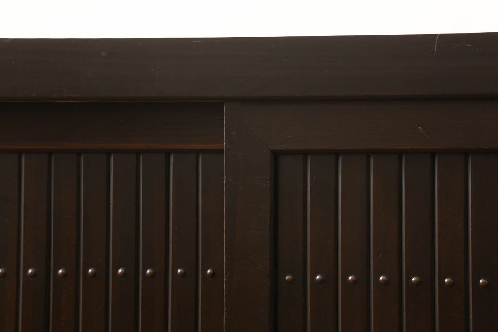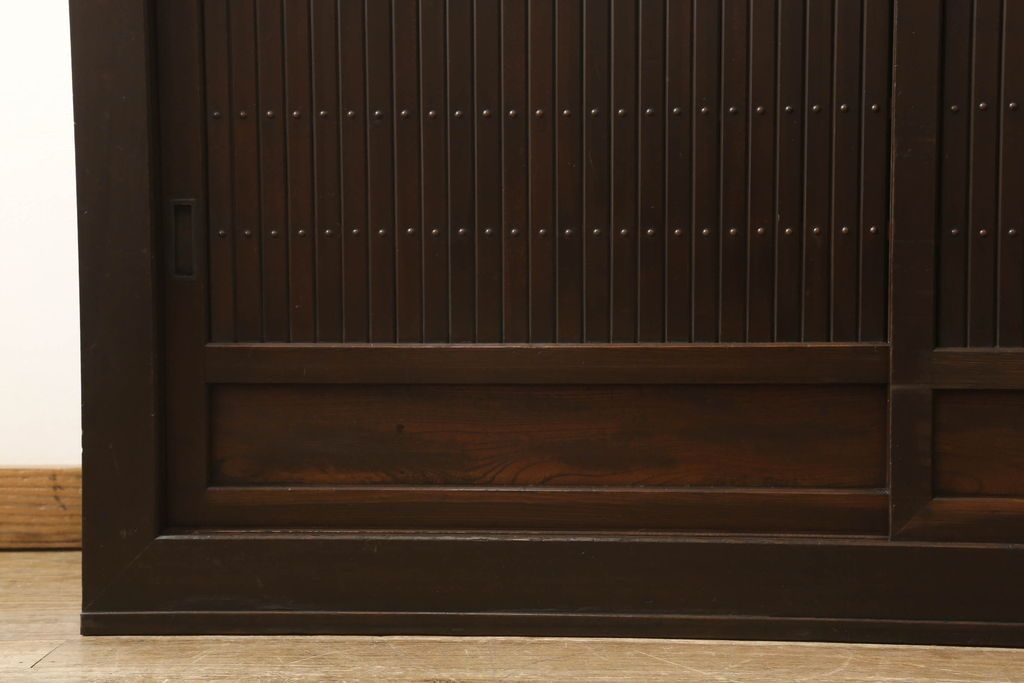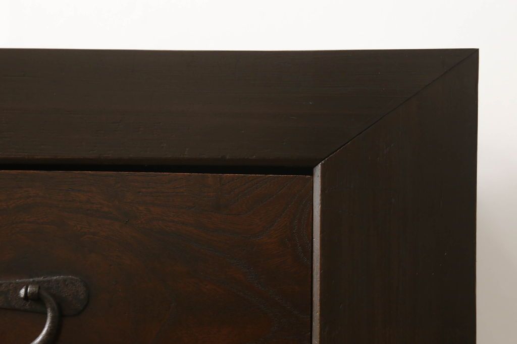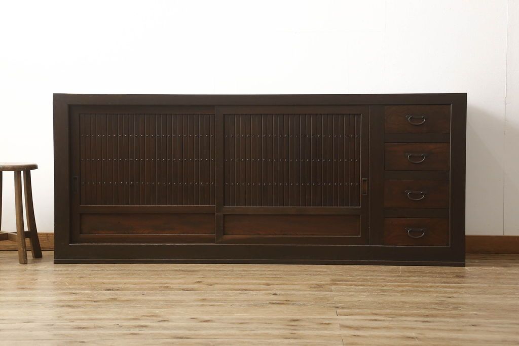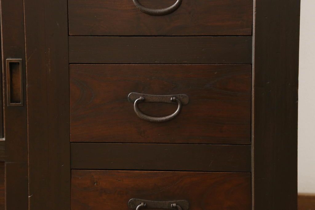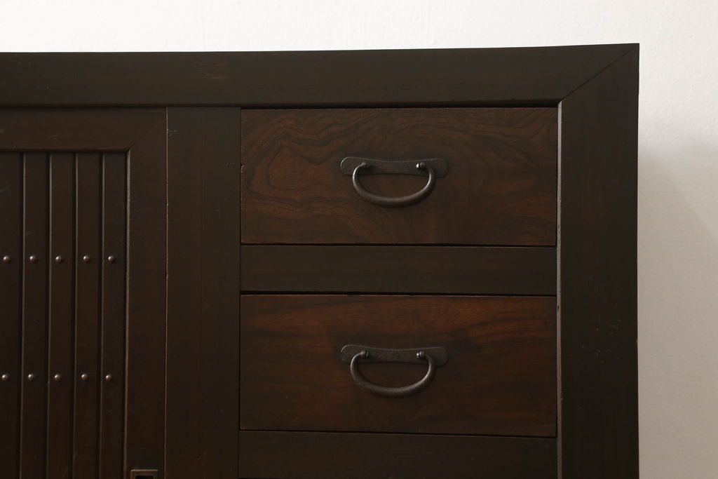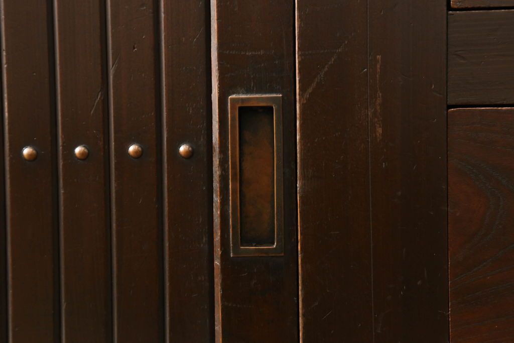 和箪笥> 水屋箪笥 > 近江水屋箪笥テレビ台をリペア&カスタム!奥行をリサイズし、既存の棚板は取り外しできる仕様に加工。修繕箇所は本体と馴染ませ、現状のお品物に合わせて1トーン程落ち着いた色に着色。(キャビネット、戸棚)