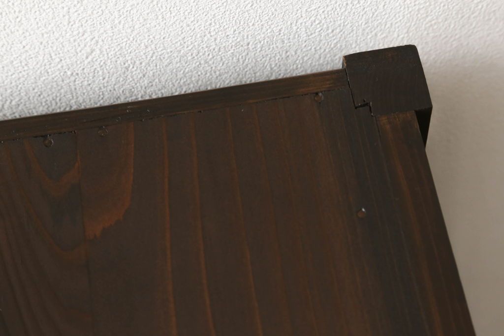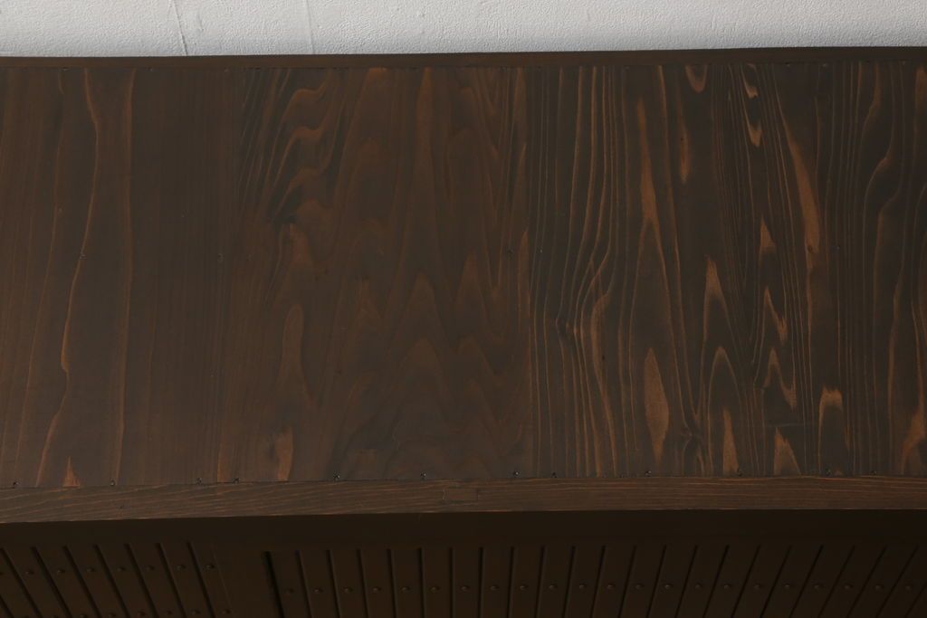 セミオーダー家具実績 > 近江水屋箪笥テレビ台をリペア&カスタム!奥行をリサイズし、既存の棚板は取り外しできる仕様に加工。修繕箇所は本体と馴染ませ、現状のお品物に合わせて1トーン程落ち着いた色に着色。(キャビネット、戸棚)