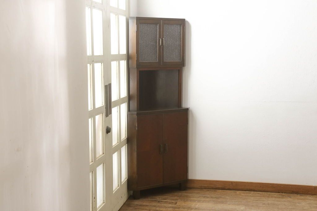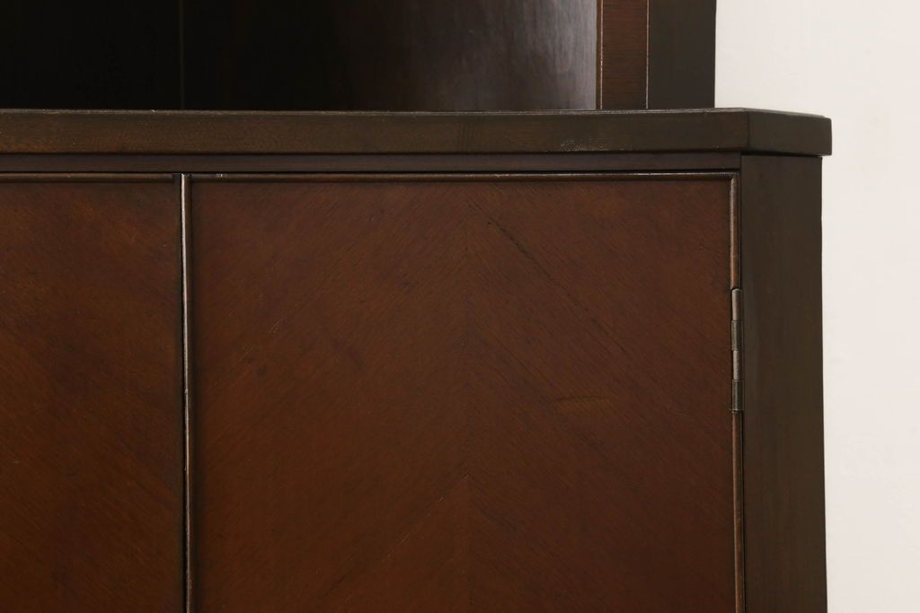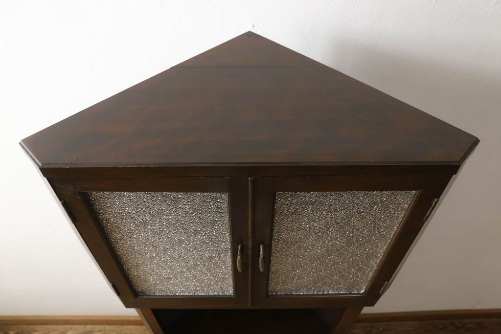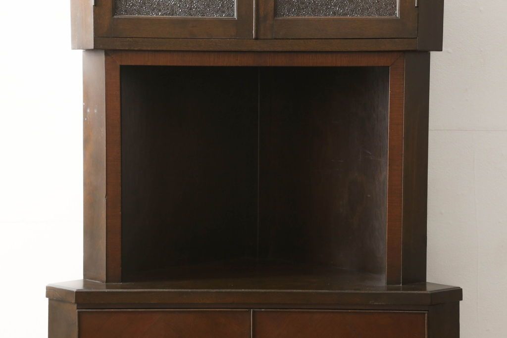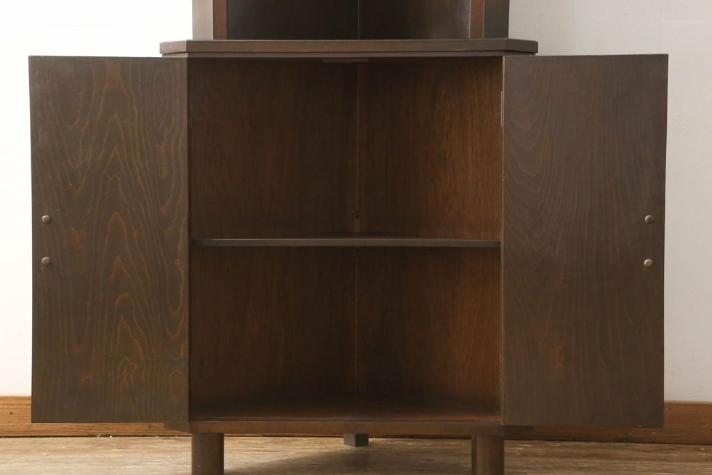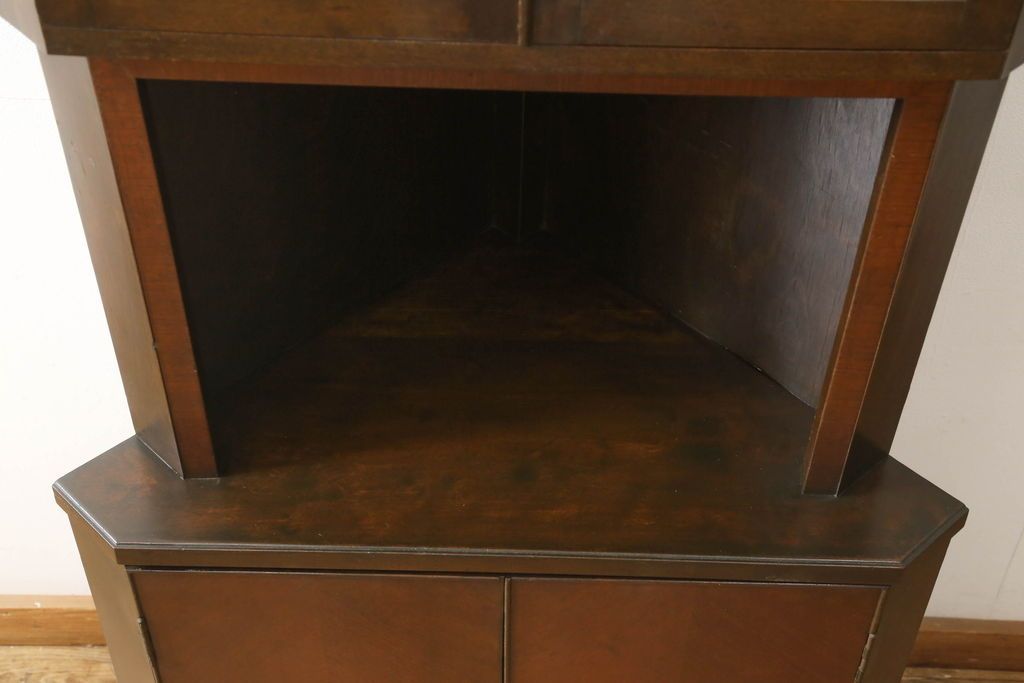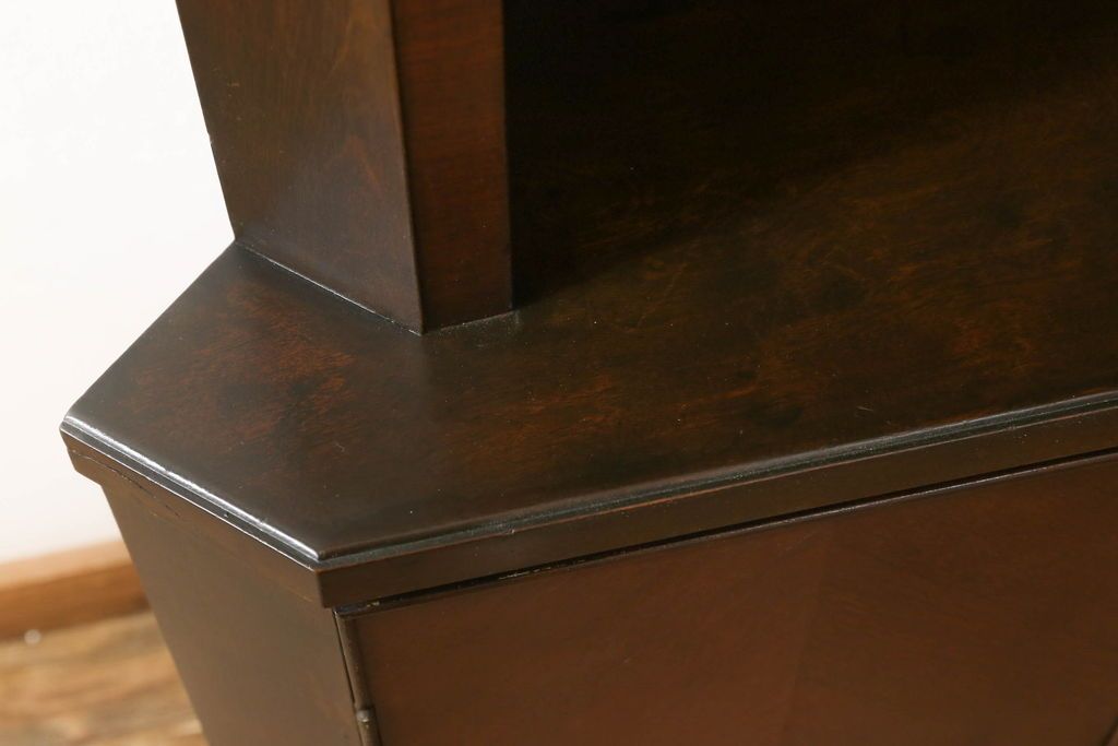 キャビネット・戸棚> コーナーキャビネット > コーナーキャビネットの見た目を変えずに綺麗にリペア!修繕箇所は本体と馴染ませ、現状の品物に合わせて1トーン程落ち着いた色に着色。(コーナーシェルフ、戸棚、収納棚)