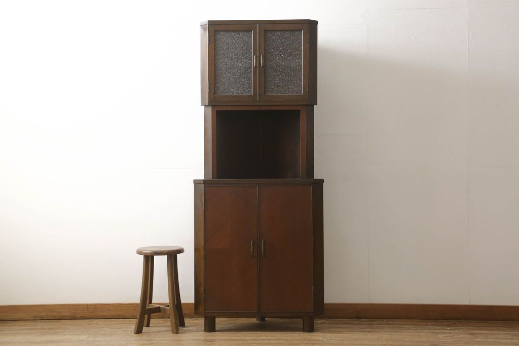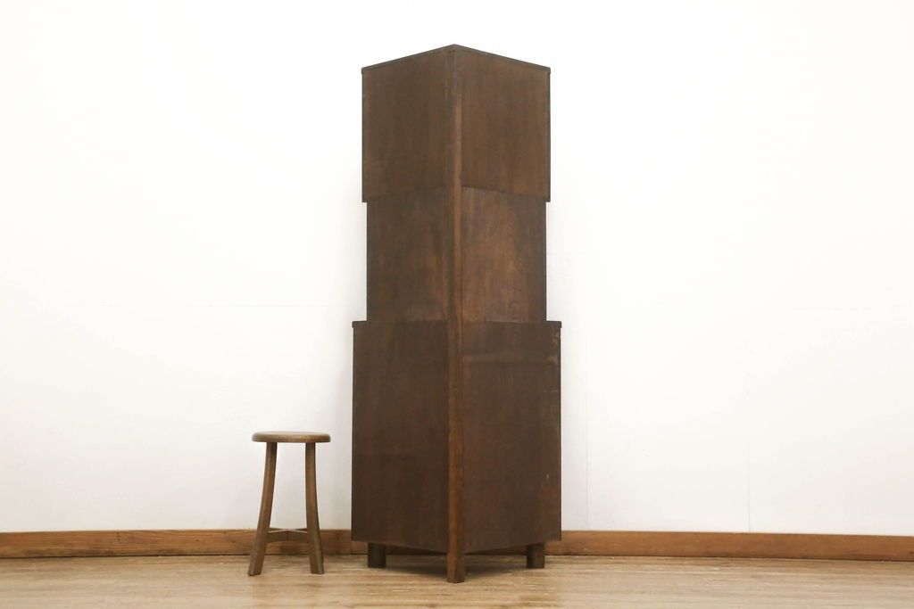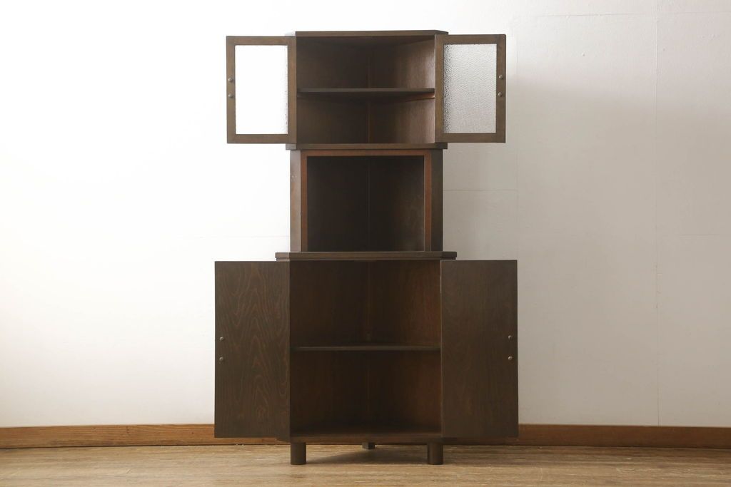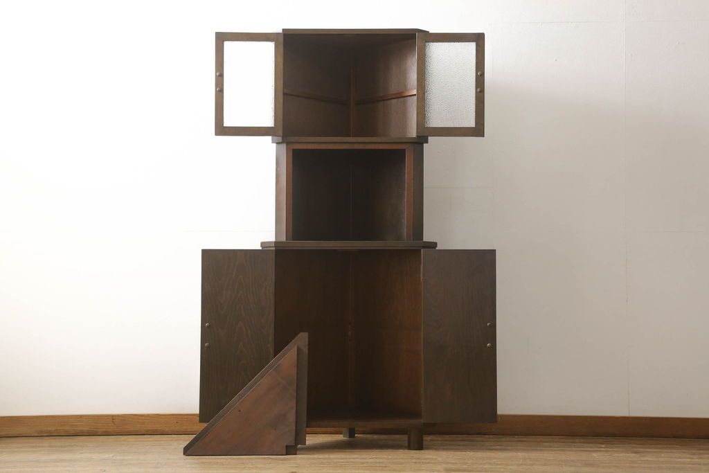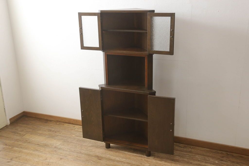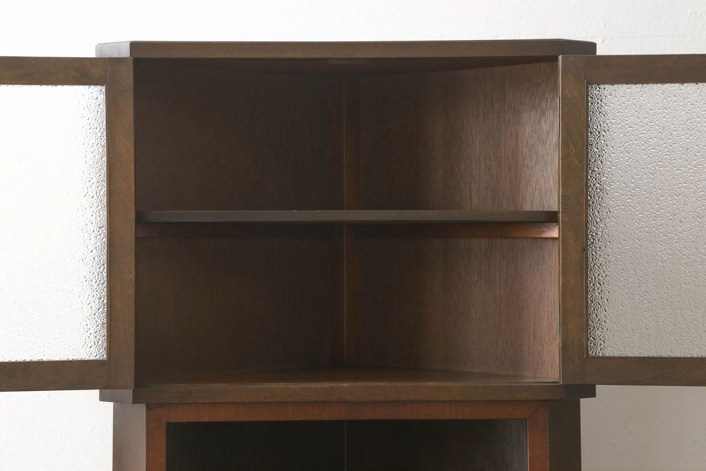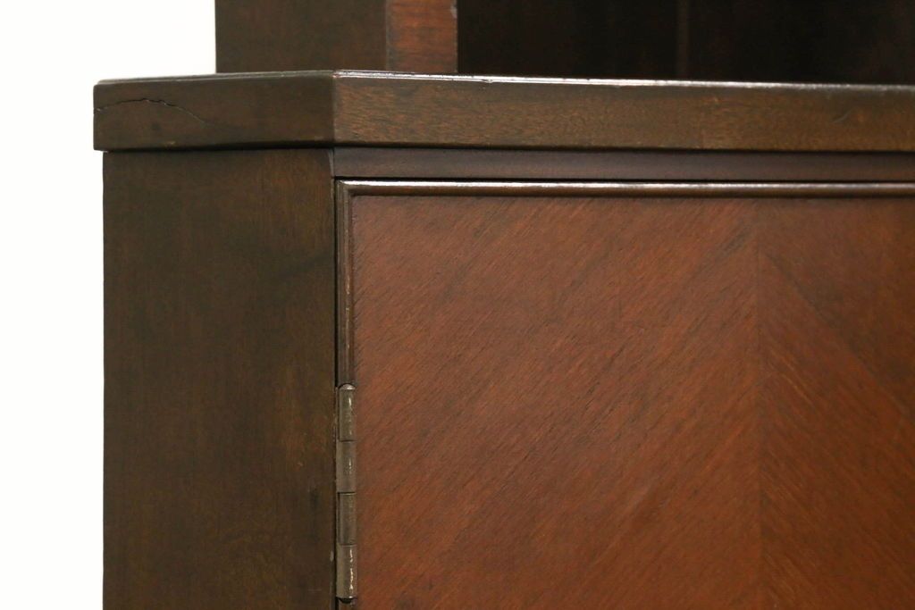 キャビネット・戸棚> コーナーキャビネット > コーナーキャビネットの見た目を変えずに綺麗にリペア!修繕箇所は本体と馴染ませ、現状の品物に合わせて1トーン程落ち着いた色に着色。(コーナーシェルフ、戸棚、収納棚)