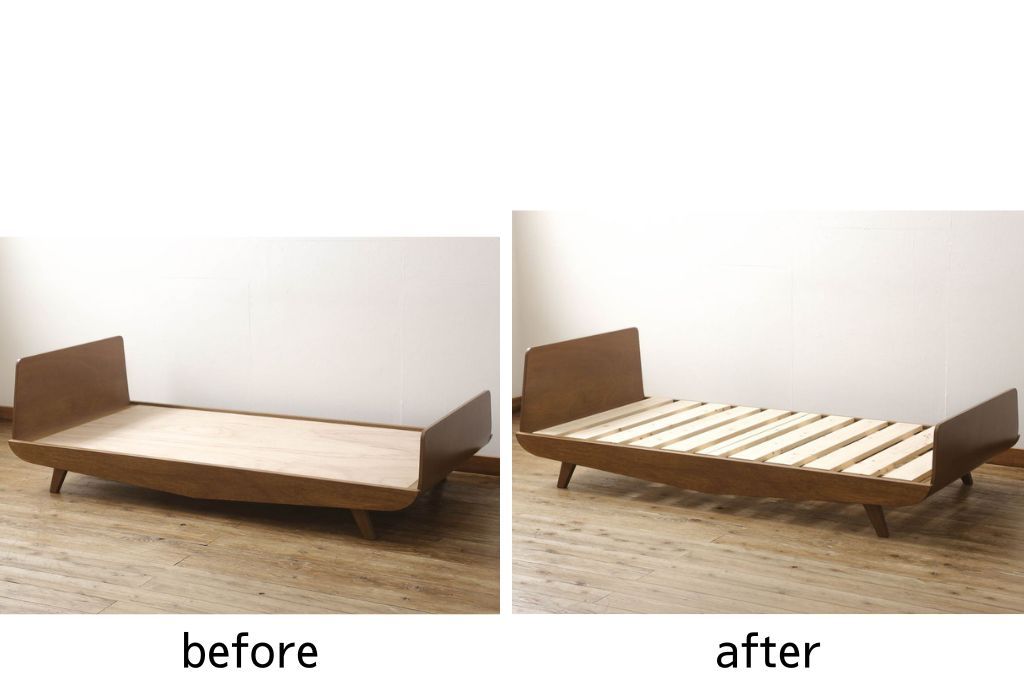 ベッド> シングル > ベッドフレームをリペア&カスタム!当店オーダー家具を参考にすのこを新規製作。取り外し可能な分割タイプにて。(シングルサイズ、ヴィンテージ)