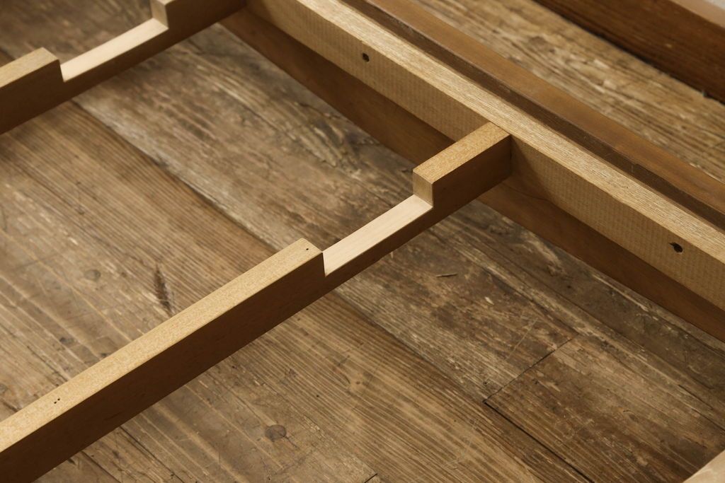 ベッド > ベッドフレームをリペア&カスタム!当店オーダー家具を参考にすのこを新規製作。取り外し可能な分割タイプにて。(シングルサイズ、ヴィンテージ)