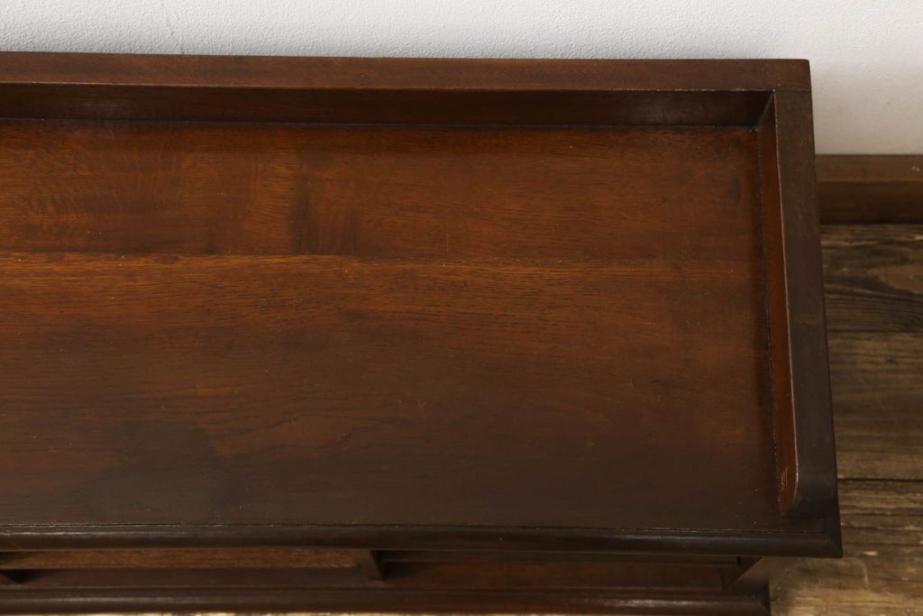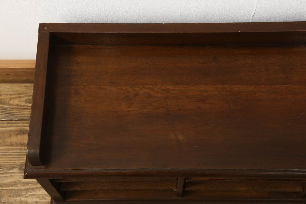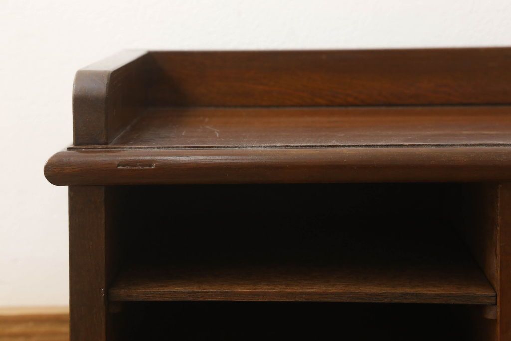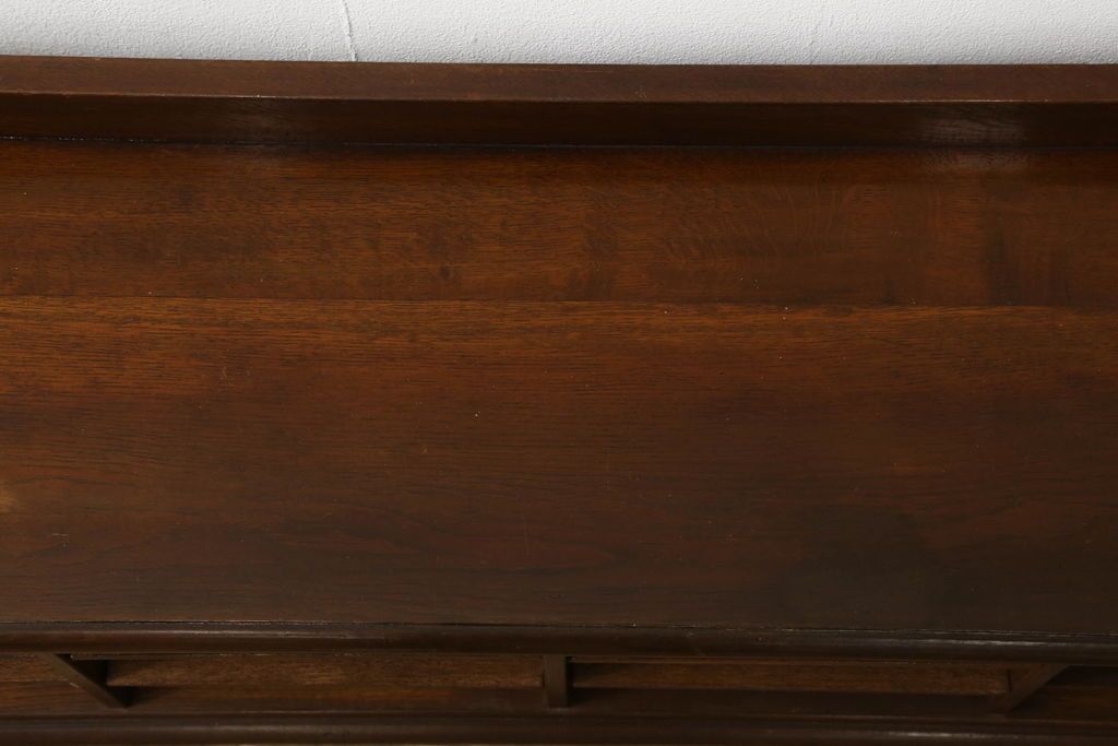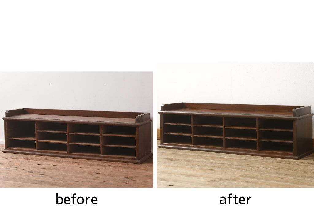 オープンラック・シェルフ > オープンラックをリペア&カスタム!棚板は不足分を新規製作し取り付け、修繕箇所は本体と馴染ませ、現状のお品物に合わせて1トーン程落ち着いた色に着色。(棚、上置棚、ローボード、サイドボード)