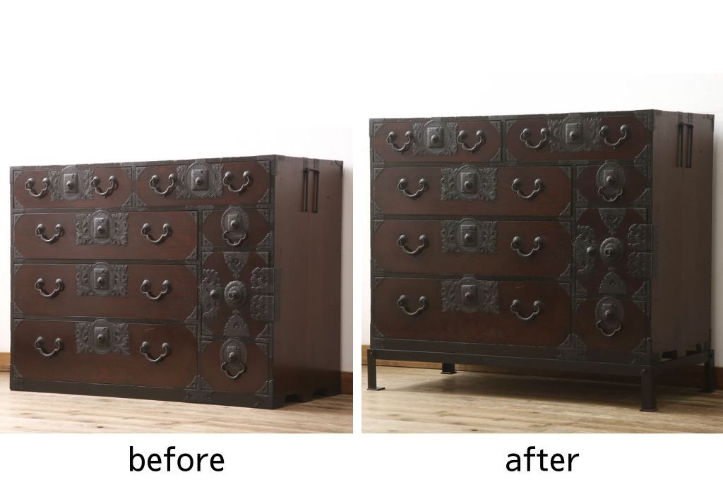 和箪笥 > 仙台箪笥をリペア&カスタム!希望の高さになるよう鉄脚を取り付け。(仙台姫箪笥、整理箪笥、衣装箪笥)