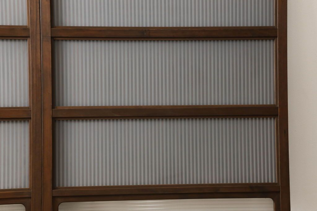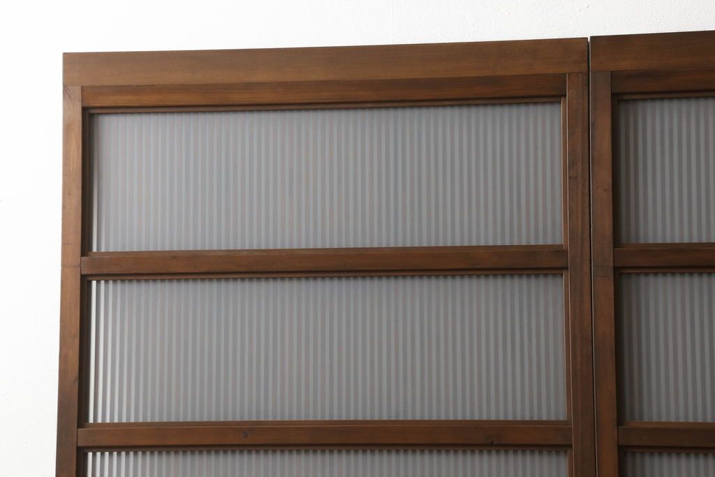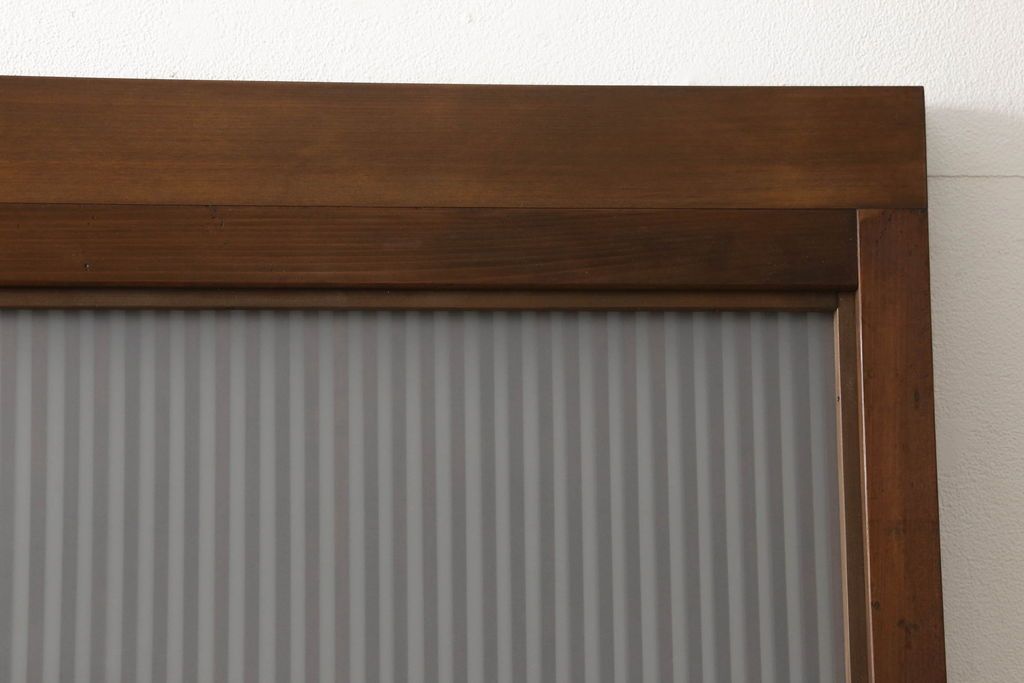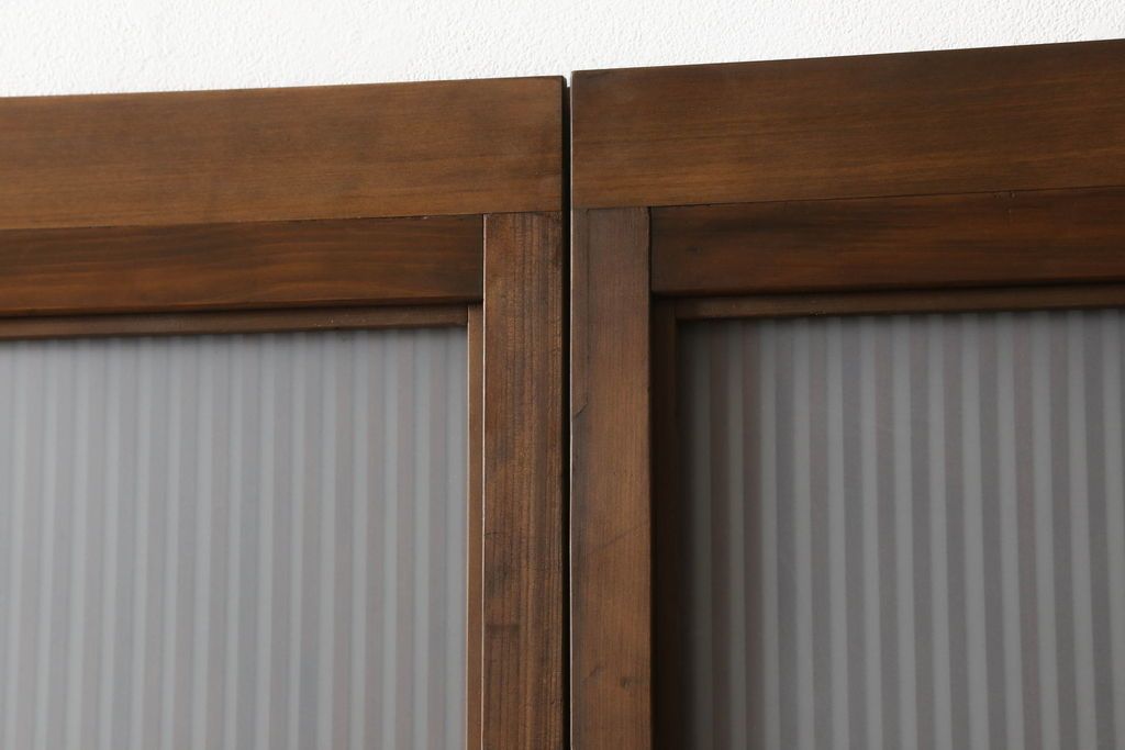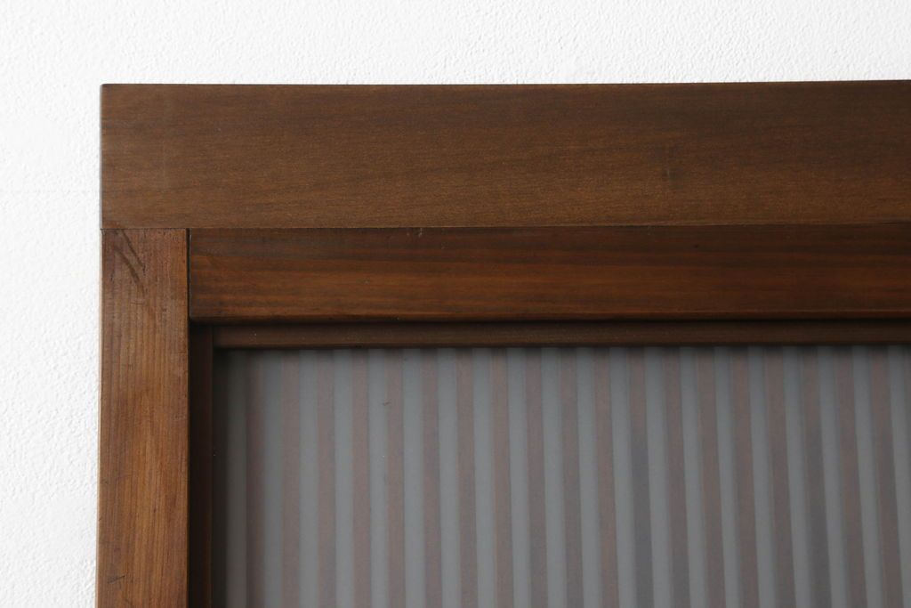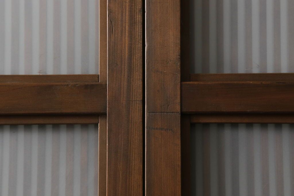 ドア・建具> 板戸・帯戸 > 格子戸2枚をリペア&カスタム!高さをリサイズし、木瓜ガラスからモールガラス、格子裏はすりガラスへ変更。上吊り式仕様に加工し、本体は現状の色味を活かして仕上げ。(建具、引き戸)