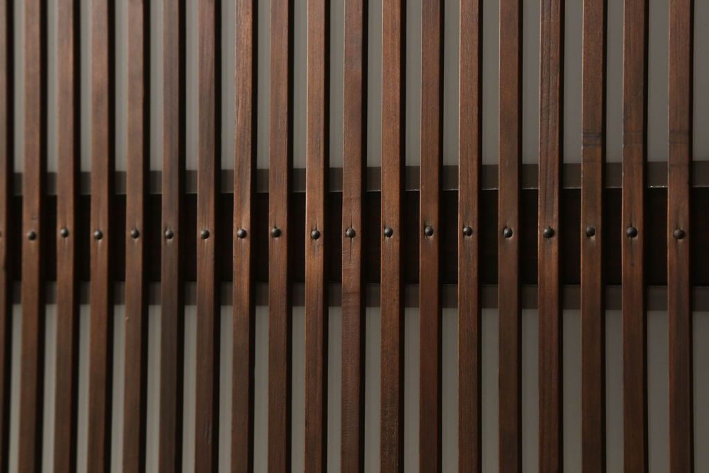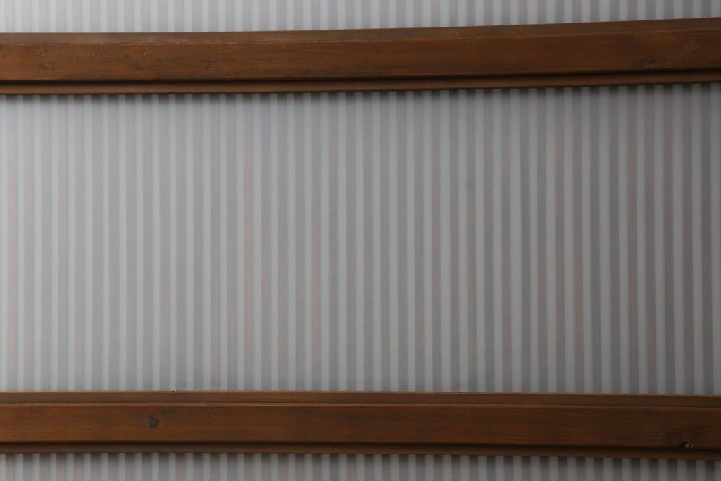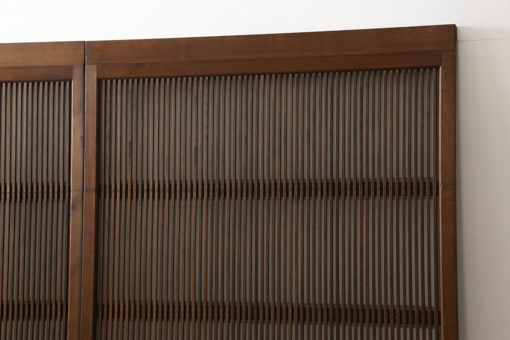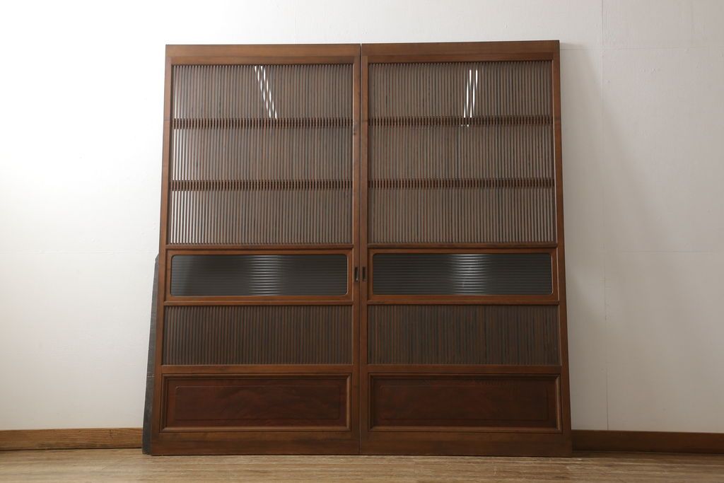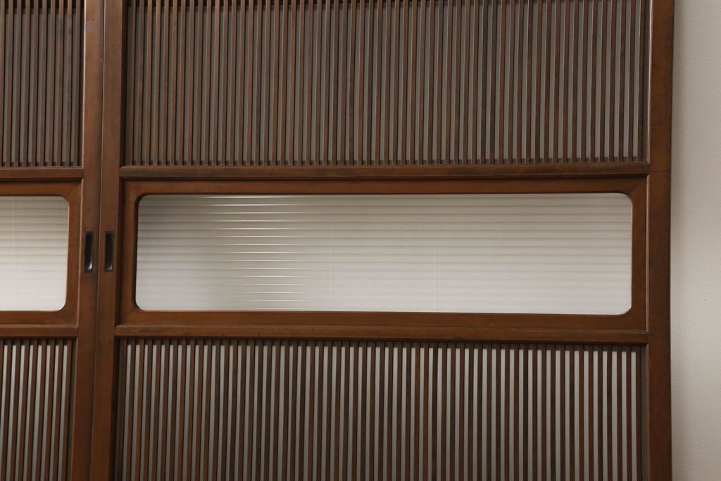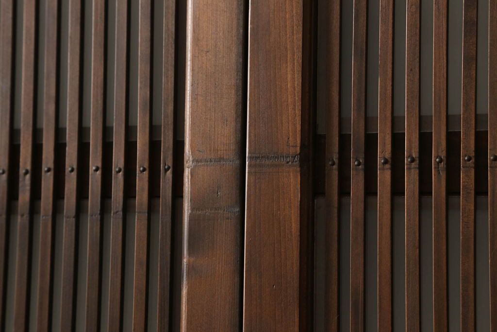 ドア・建具> 板戸・帯戸 > 格子戸2枚をリペア&カスタム!高さをリサイズし、木瓜ガラスからモールガラス、格子裏はすりガラスへ変更。上吊り式仕様に加工し、本体は現状の色味を活かして仕上げ。(建具、引き戸)