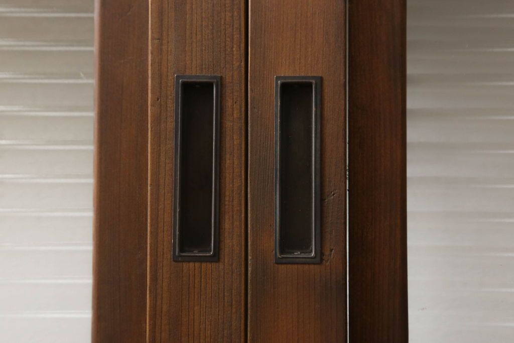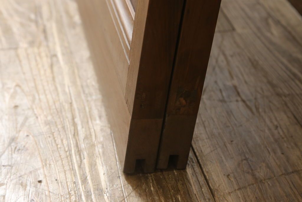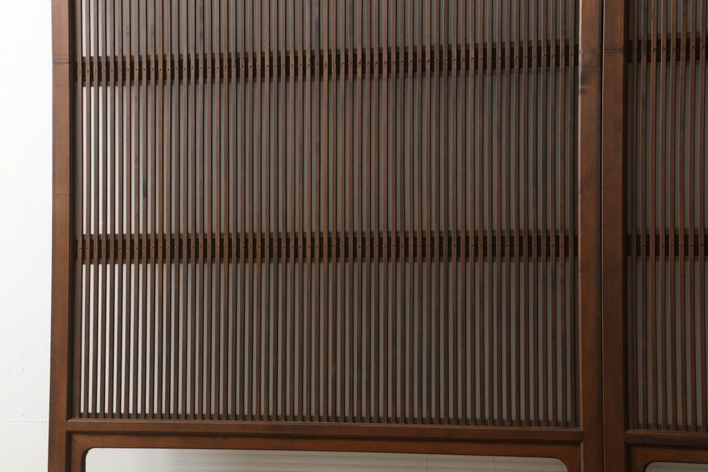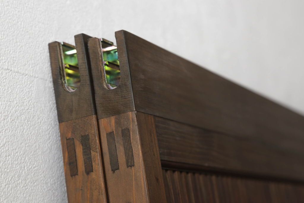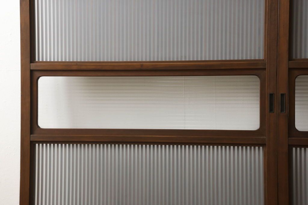 セミオーダー家具実績 > 格子戸2枚をリペア&カスタム!高さをリサイズし、木瓜ガラスからモールガラス、格子裏はすりガラスへ変更。上吊り式仕様に加工し、本体は現状の色味を活かして仕上げ。(建具、引き戸)
