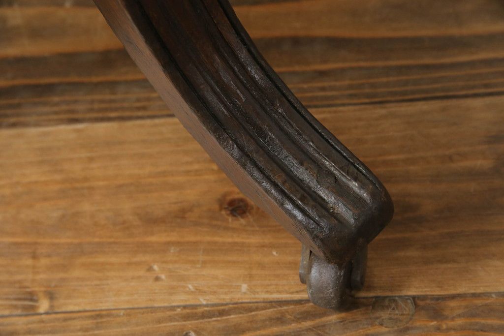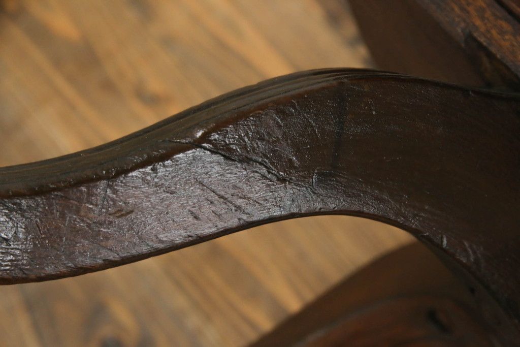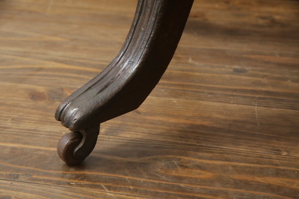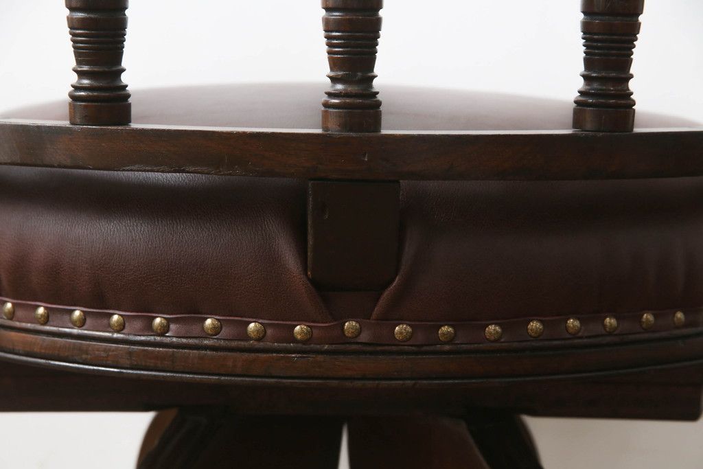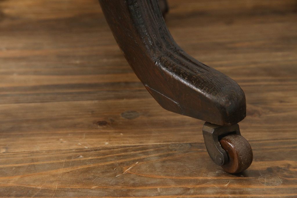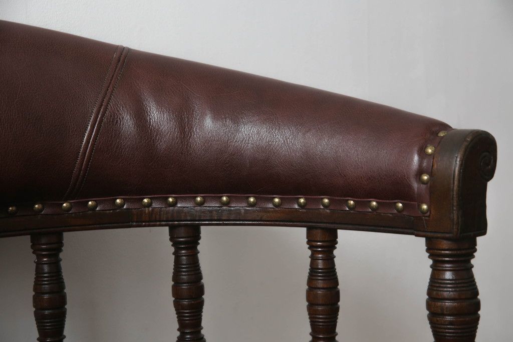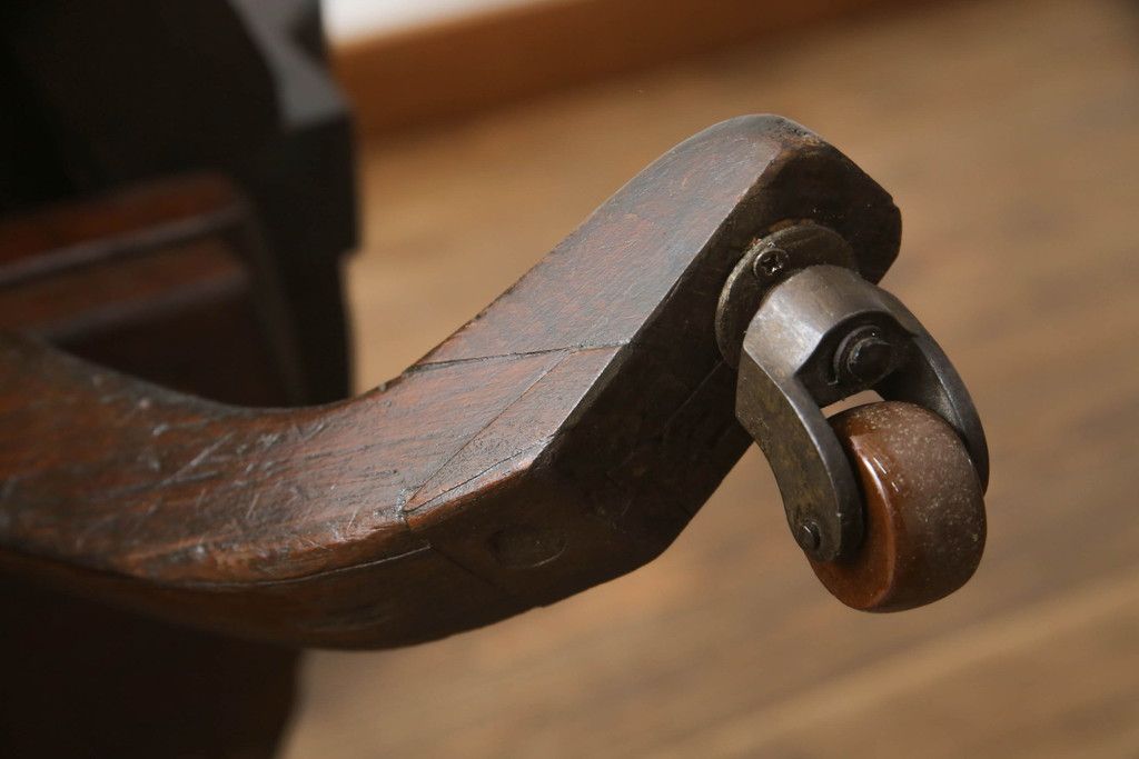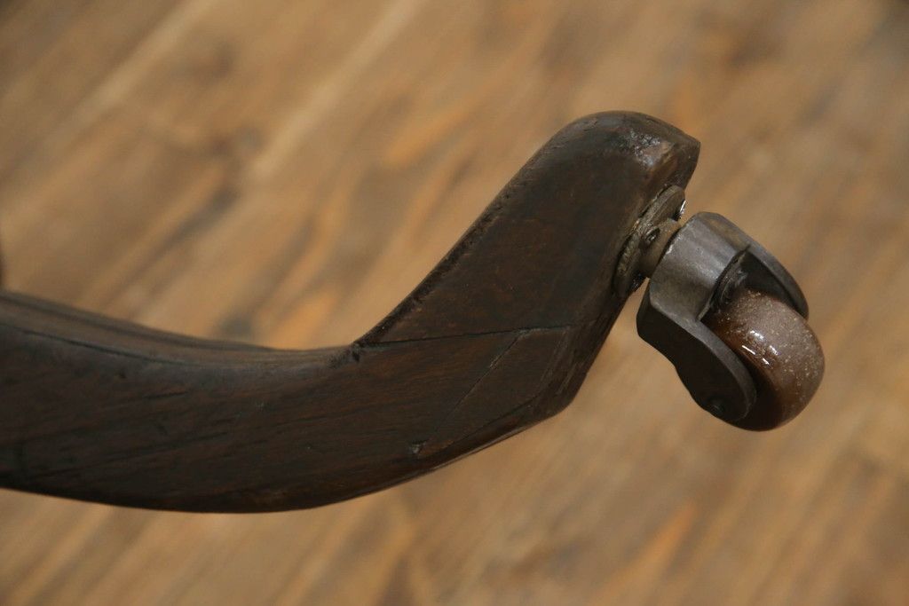 椅子・ベンチ> 				アームチェア				> キャスター付きチェアをリペア&カスタム!座面と背面を指定の本革に張り変え、硬さを調整。木部は1トーン落ち着いた色味に着色仕上げ。