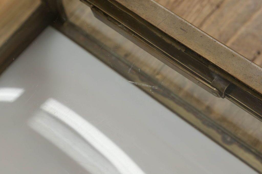 セミオーダー家具実績 > ショーケースをリペア&カスタム!真鍮製のストッパーを当店商品を参考に職人が手作業で製作し取り付け。(ガラスケース、店舗什器)